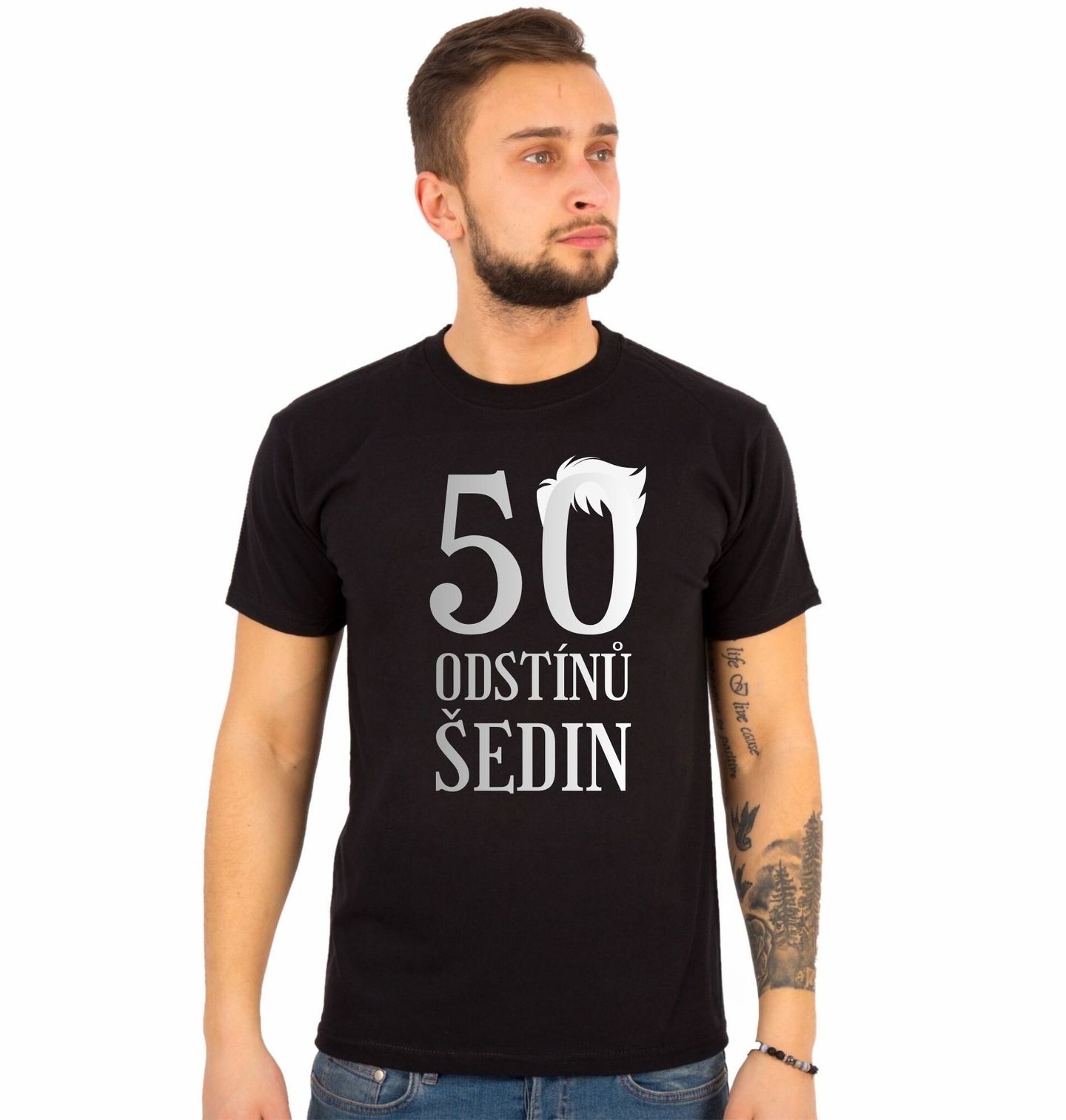 Pánské tričko 50 odstínů šedin. Originální a vtipný motiv 50 odstínů šedin je skvělou volbou pro oslavu 50. narozenin i jako trefný dárek na kulatiny. Design pobaví každého oslavence, který bere narozeniny s nadhledem, humorem a nebojí se pořádné legrace. Tento motiv skvěle funguje jako parodie na film Padesát odstínů šedi, ale v odlehčené a narozeninové verzi.