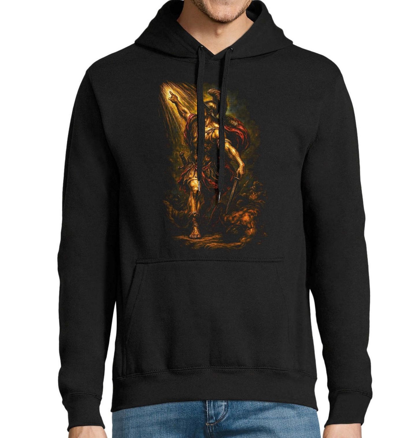 Pánská mikina Achilles Hrdina Tróje. Řecká mytologie z něj udělala symbol dokonalého válečníka – rychlého, neústupného a téměř nezranitelného hrdiny trojské války. Paprsek světla nad jeho vztyčenou rukou podtrhuje osudovost okamžiku, zatímco poražený nepřítel u nohou připomíná, že Achilleus byl postrachem bojiště. Achilleus byl nejsilnější a nejrychlejší válečník řeckého vojska. Když bojoval, Trójané ustupovali.