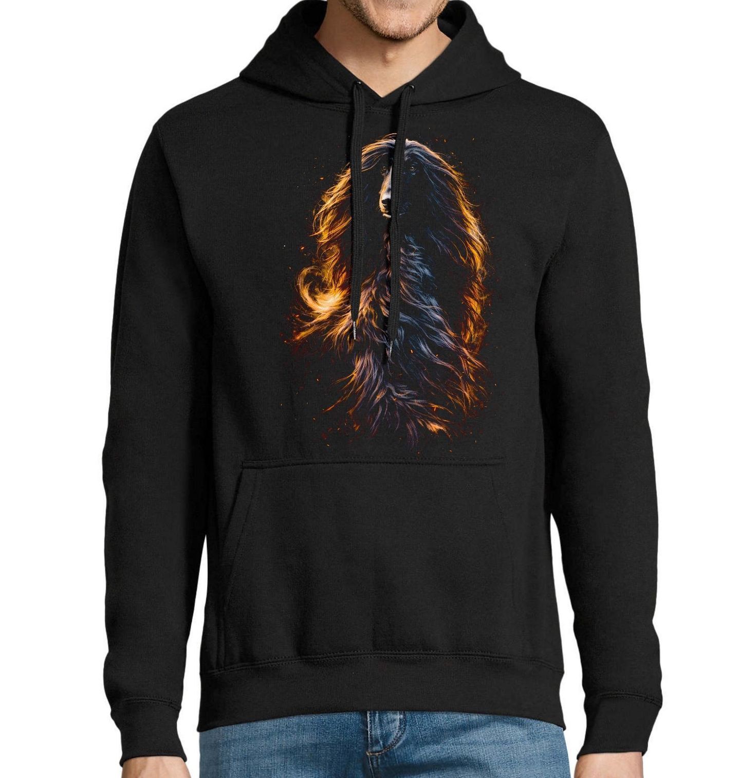 Pánská mikina Afghánský chrt. Afghánský chrt je nezávislý, inteligentní a citlivý pes, který si zachovává svou důstojnost i jemnost. Pro každého pejskař představuje toto plemeno kombinaci elegance a osobité povahy. Tento pes je nejen krásný, ale také rychlý a obratný, původně vyšlechtěný pro lov v náročném terénu. Tento pes je symbolem elegance, noblesy a přirozené krásy, která zaujme na první pohled.