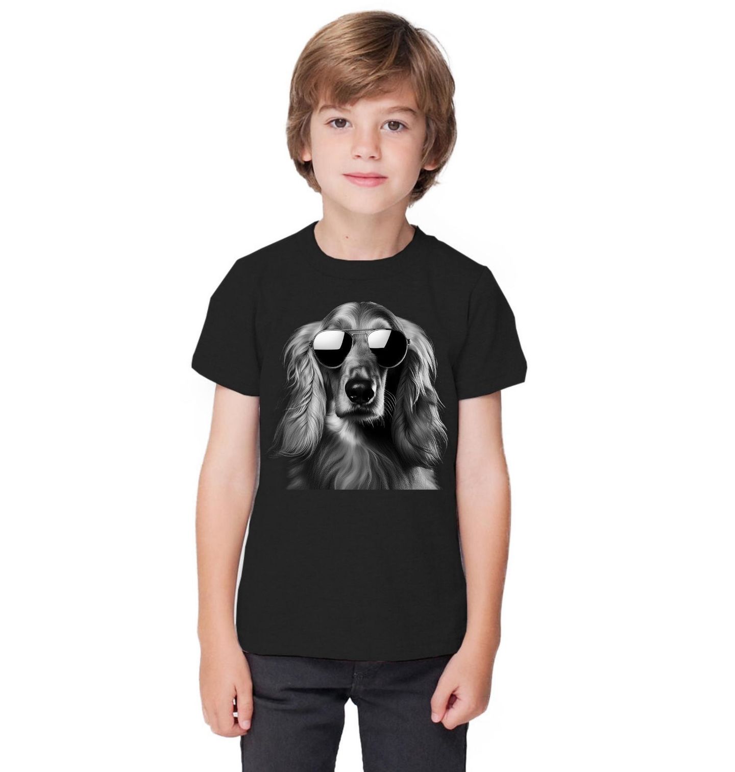 Dětské tričko Afghánský chrt s Brýlemi. Tento výjimečný pes je symbolem hrdosti, ladnosti a sebevědomí – a právě proto si získá pozornost na první pohled. Každý pejskař, který miluje plemeno Afghánský chrt, ocení stylové zpracování, které dodává motivu osobitý a lehce hravý výraz.