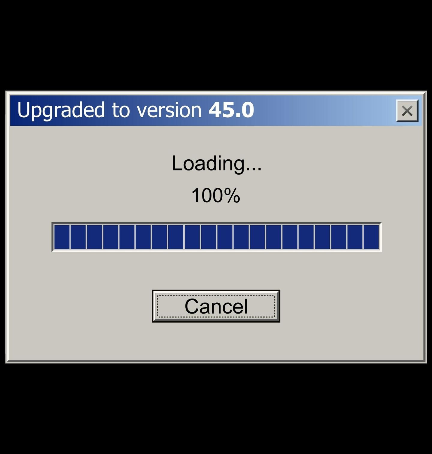 Dámské tričko Aktualizováno na verzi 45.0. Originální motiv Upgraded to Version 45.0 je skvělou volbou pro každého, kdo slaví 45. narozeniny s humorem. Design připomíná staré počítačové načítací okno ve stylu klasických XP Windows, takže skvěle zaujme všechny fanoušky retro techniky, IT humoru a počítačové estetiky.