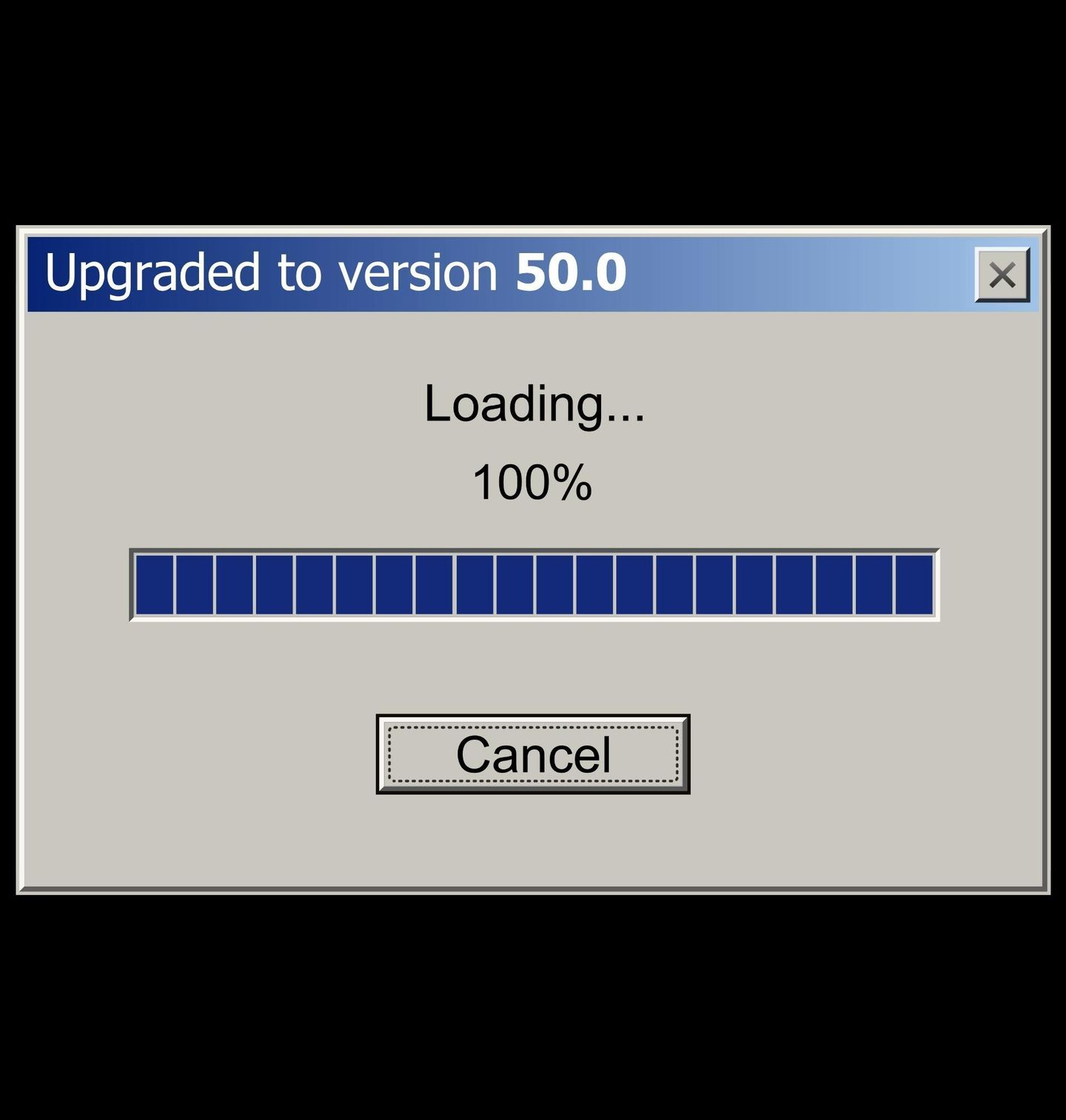 Pánské tričko Aktualizováno na verzi 50.0. Originální motiv Upgraded to Version 50.0 je skvělou volbou pro každého, kdo slaví 50. narozeniny a chce své kulatiny pojmout s humorem. Design připomíná staré počítačové načítací okno ve stylu klasických XP Windows, takže skvěle zaujme všechny fanoušky retro techniky, IT humoru a počítačové estetiky.