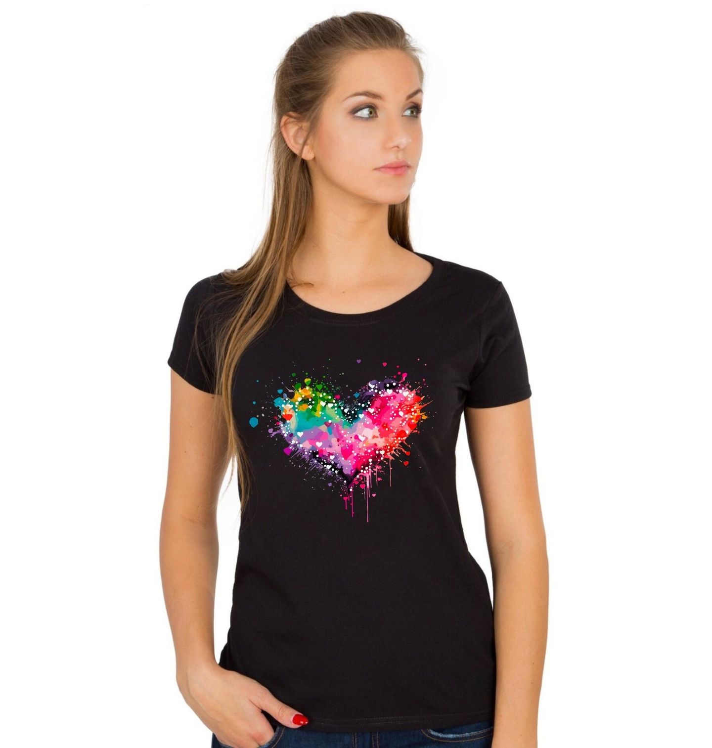 Dámské tričko Akvarelové Srdce. Motiv vytváří malířsky zpracované srdce plné výrazných barev, kapek a stříkanců, které působí jako živé umělecké dílo. Perfektní volba pro zamilované, romantické duše, milovníky umění i ty, pro které je láska životním stylem. Skvěle se hodí jako dárek k Valentýnu, výročí, narozeninám nebo jen tak pro radost.