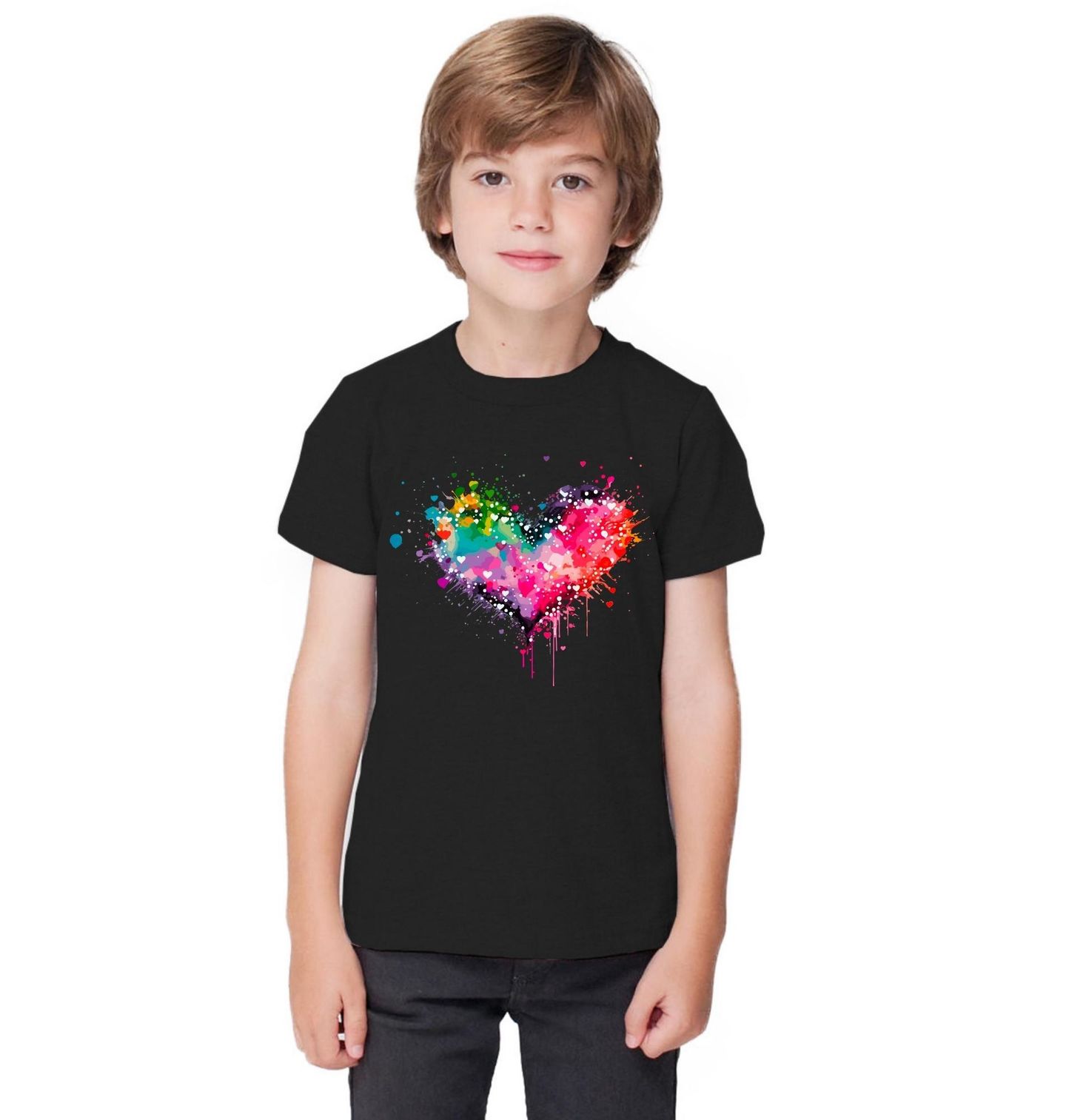 Dětské tričko Akvarelové Srdce. Motiv vytváří malířsky zpracované srdce plné výrazných barev, kapek a stříkanců, které působí jako živé umělecké dílo. Perfektní volba pro zamilované, romantické duše, milovníky umění i ty, pro které je láska životním stylem. Skvěle se hodí jako dárek k Valentýnu, výročí, narozeninám nebo jen tak pro radost.