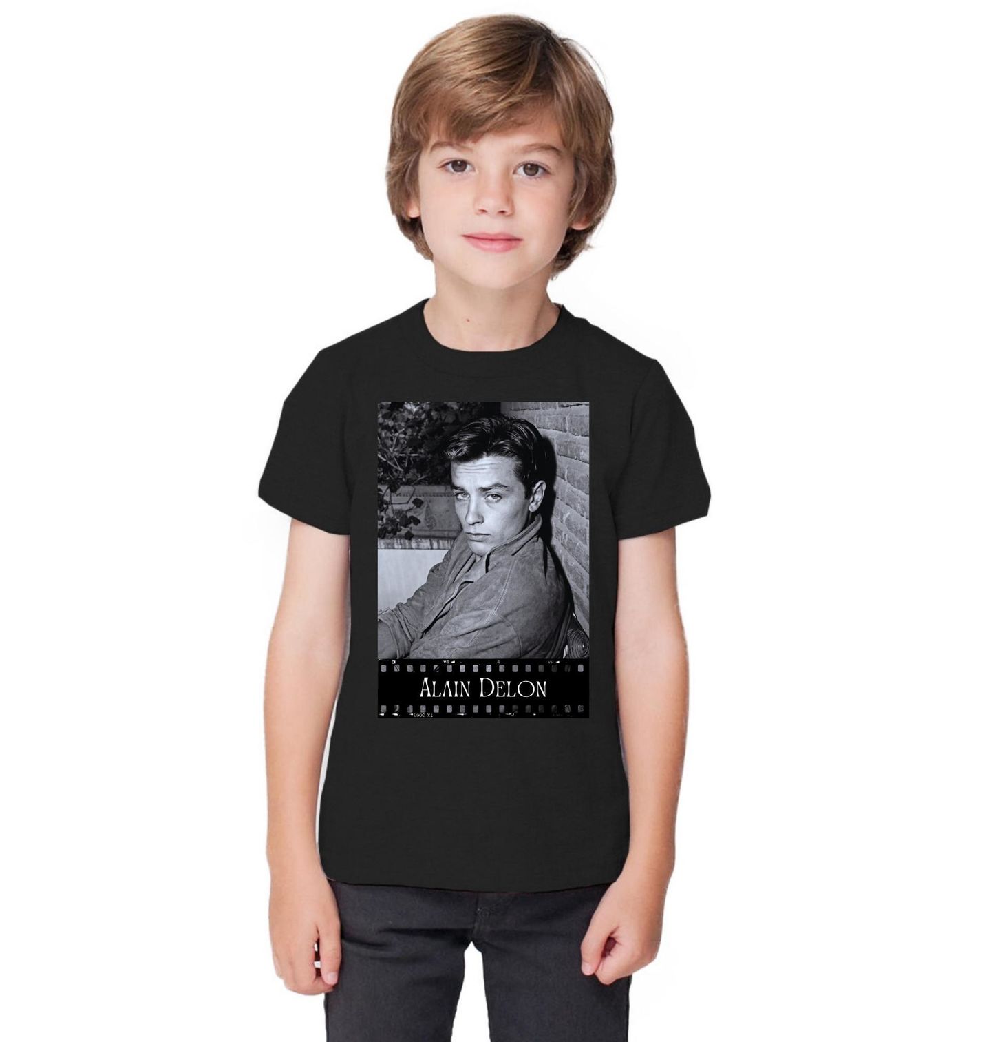Dětské tričko Alain Delon. Alain Delon byl francouzský herec známý svým charismatem, výrazným pohledem a nezaměnitelným stylem. Proslavil se rolemi ve filmech jako Samuraj, Rocco a jeho bratři nebo Borsalino, díky kterým se stal symbolem elegance a mužnosti. Tento motiv zachycuje jeho ikonický vzhled v minimalistickém filmovém stylu, který ocení milovníci klasického filmu, hereckých legend i nadčasového designu.