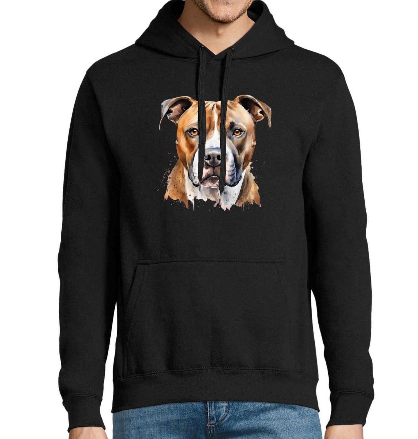 Pánská mikina Americký stafordšírský teriér American Staffordshire Terrier. Americký stafordširský teriér, zkráceně „staford", je psí plemeno, které má předky v anglických buldocích a teriérech. Jejich křížením vznikli jeho nejbližší příbuzní, americký pitbulteriér a anglický stafordšírský bulteriér. Tento pes si získá srdce každého pejskaře, který ví, že krása není jen na povrchu, ale i v duši.