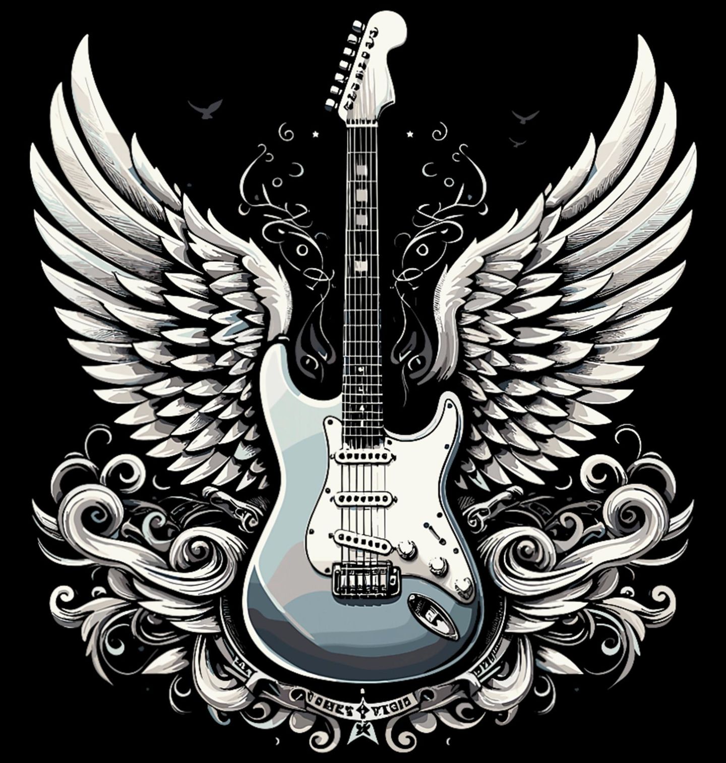 Dětské tričko Andělská Křídla Rocku. Výrazný hudební motiv, kde dominuje elektrická kytara ve stylu Stratocaster s mohutnými andělskými křídly a bohatými ornamenty v pozadí. Design působí majestátně, silně a přitom elegantně – přesně tak, jak zní poctivý rock and roll. Ideální volba pro muzikanty, fanoušky rockové scény i všechny, kteří vědí, že bez rock and roll a pořádná kytara by žádná párty nebyla úplná.
