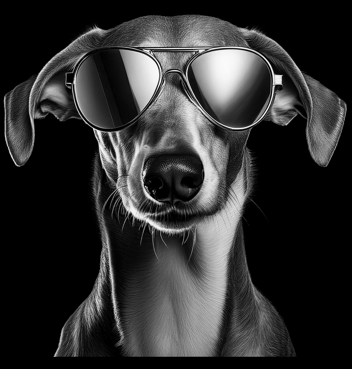 Dámské tričko Anglický chrt s Brýlemi. Tento pes je symbolem rychlosti, lehkosti a vytříbeného stylu, což z designu dělá originální doplněk pro každého, kdo miluje psy a minimalistický vzhled. Černobílé zpracování působí luxusně a snadno se kombinuje s každodenním outfitem. Každý pejskař ocení jedinečný motiv, který spojuje humor, eleganci a lásku ke čtyřnohým parťákům.