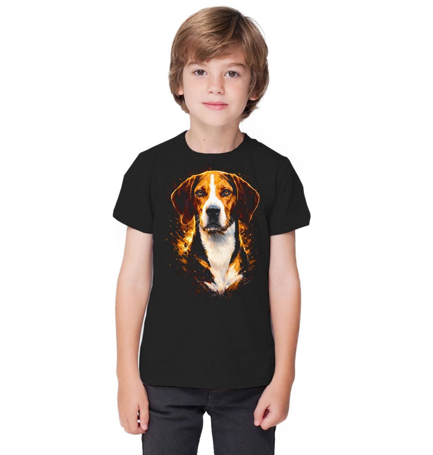 Dětské tričko Anglický foxhound. Tento elegantní pes zaujme typickým trojbarevným zbarvením, dlouhýma ušima a soustředěným pohledem, který odráží jeho přirozený instinkt stopaře. Každý pejskař ocení charakter tohoto plemene – foxhound je pes, který miluje pohyb, práci v terénu a spolupráci ve smečce. Je ideální pro aktivní životní styl a patří mezi plemena, která vynikají svou vytrvalostí a oddaností.