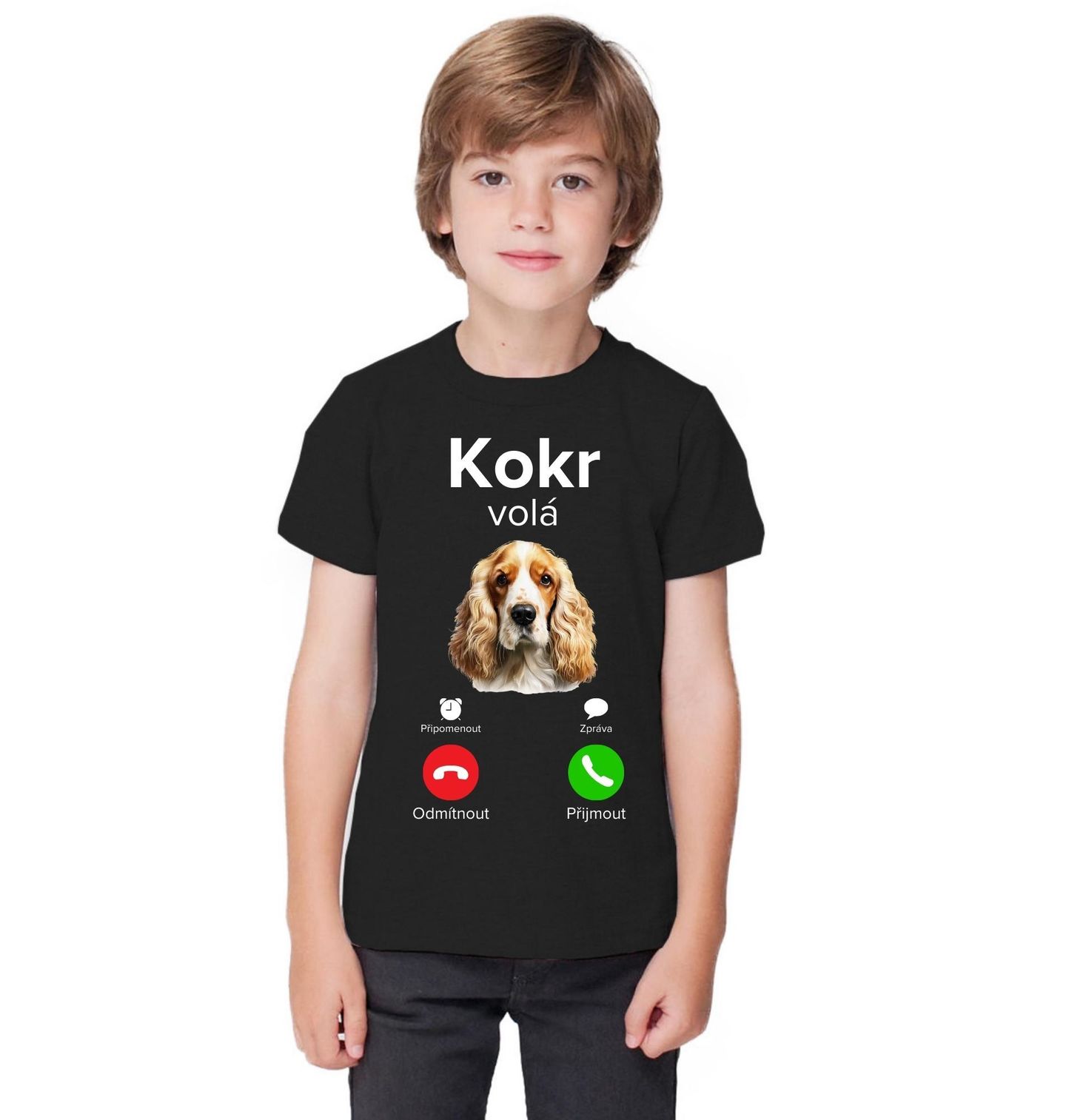 Dětské tričko Anglický kokršpaněl volá Phone Call. Stačí jeden pohled a je jasné, kdo právě „volá“ na procházku nebo pro pamlsek. Anglický kokršpaněl je pes plný energie, radosti a oddanosti. Toto tričko je ideální pro každého, kdo je hrdý pejskař a ví, že když pes potřebuje pozornost, nedá se odmítnout. Vtipné zpracování ve stylu mobilního hovoru zaručeně pobaví okolí a zároveň jasně ukáže vaši lásku k plemeni.