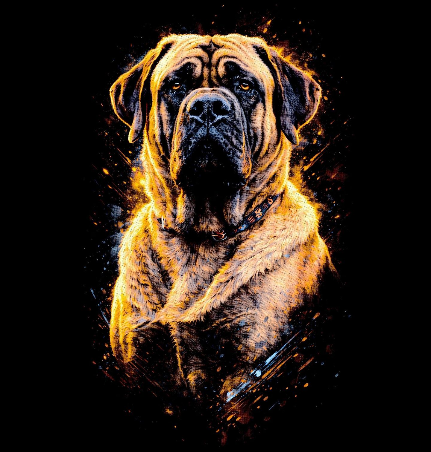 Dětské tričko Anglický mastif. Anglický mastif je známý jako klidný, věrný a ochranitelský pes, který si vytváří silné pouto se svou rodinou. Tento design v moderním, dynamickém stylu podtrhuje jeho impozantní vzhled a přirozenou autoritu. Mohutná hlava, hluboký pohled a typické vrásky dávají tomuto portrétu nezaměnitelný charakter. Každý pejskař ocení, jak dokonale tento pes vyzařuje respekt i přátelskou povahu zároveň.
