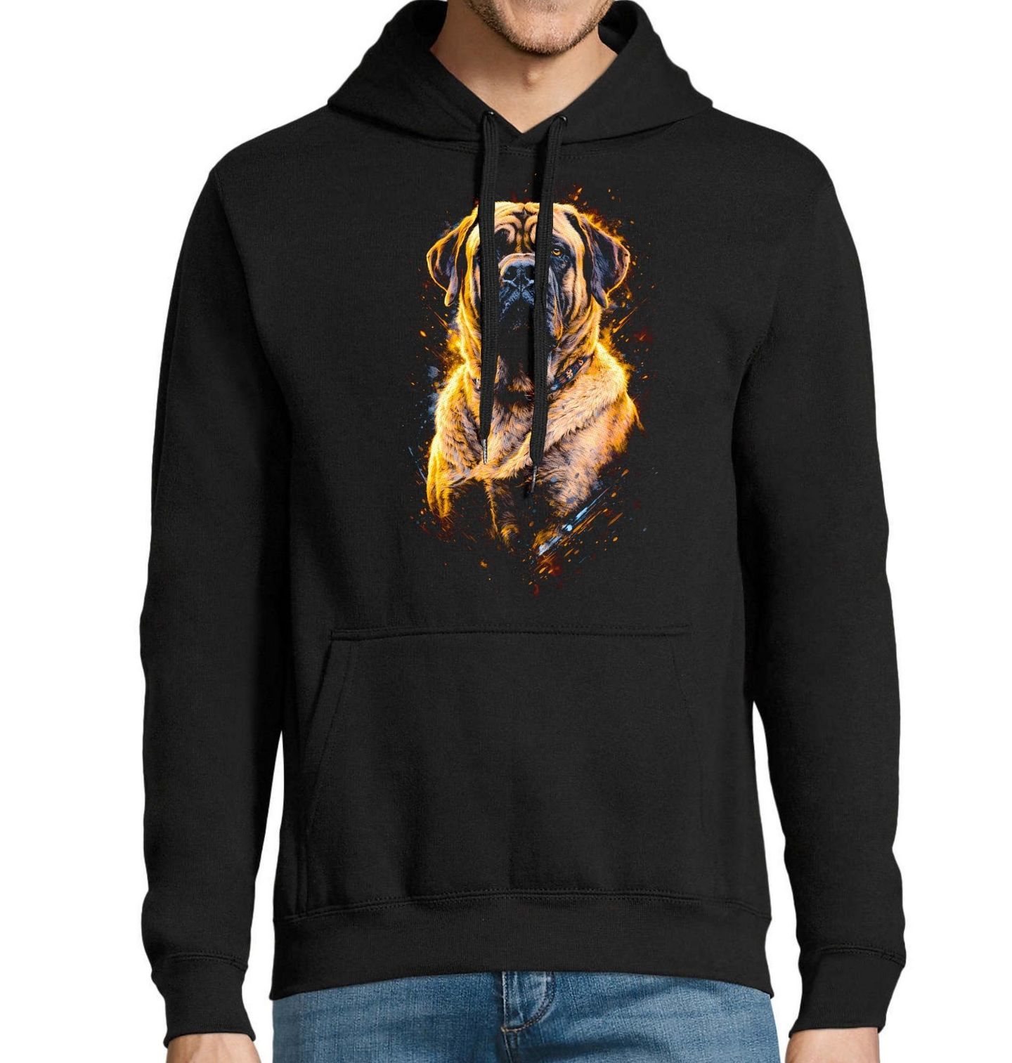 Pánská mikina Anglický mastif. Anglický mastif je známý jako klidný, věrný a ochranitelský pes, který si vytváří silné pouto se svou rodinou. Tento design v moderním, dynamickém stylu podtrhuje jeho impozantní vzhled a přirozenou autoritu. Mohutná hlava, hluboký pohled a typické vrásky dávají tomuto portrétu nezaměnitelný charakter. Každý pejskař ocení, jak dokonale tento pes vyzařuje respekt i přátelskou povahu zároveň.