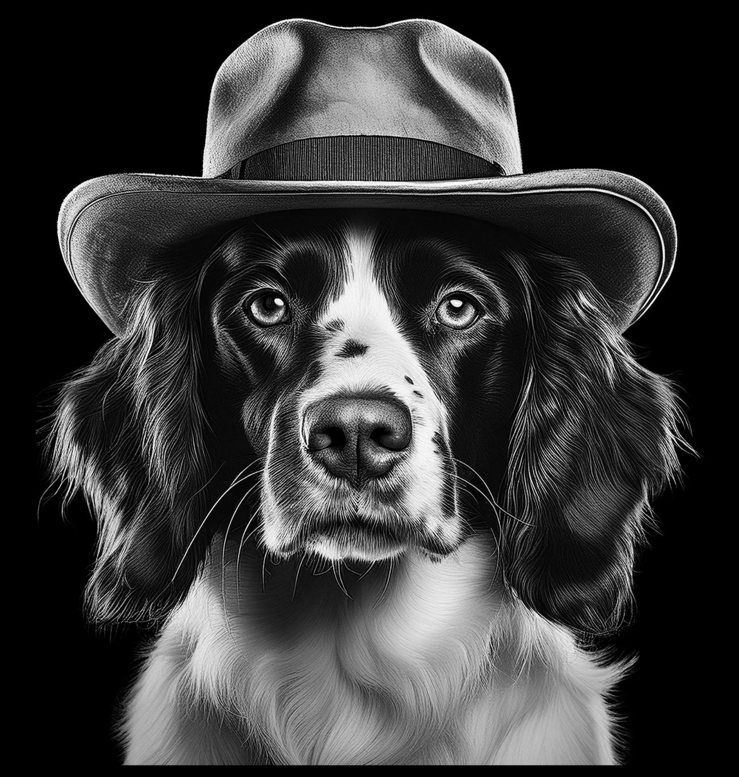 Dětské tričko Anglický špringeršpaněl s Kloboukem. Detailní motiv zachycuje plemeno Anglický špringeršpaněl jako stylového elegána s kloboukem a klidným, sebevědomým výrazem. Tento krásný pes je symbolem věrnosti, energie a přirozené elegance, kterou ocení každý milovník psů. Precizní zpracování zvýrazňuje typické rysy a jemnou srst, díky čemuž motiv okamžitě zaujme každého, kdo má rád originální psí portréty.