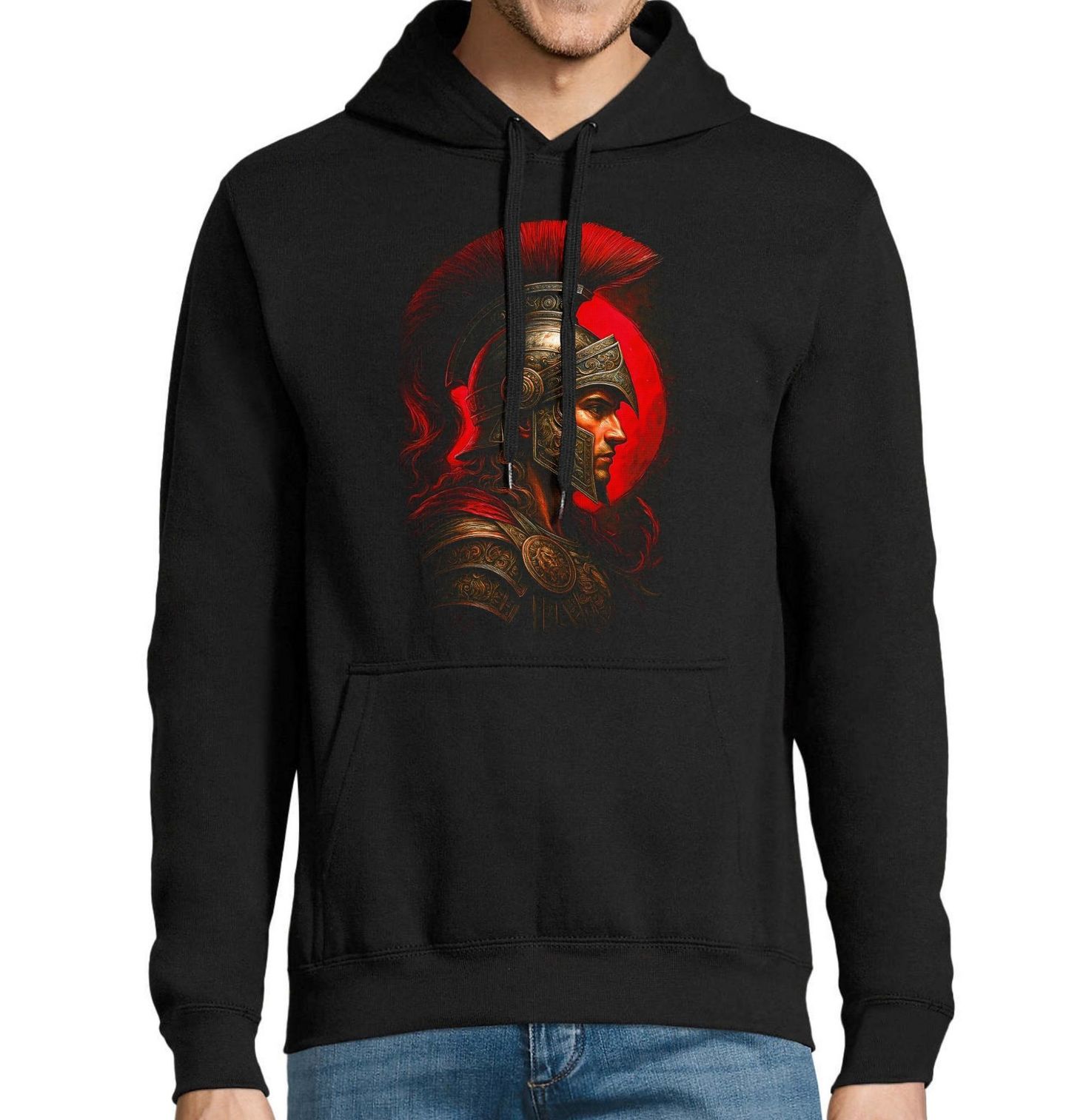 Pánská mikina Arés Bůh války. Arés, syn nejvyššího řeckého boha Dia a jeho manželky Héry, je v řecké mytologii bohem války. Představuje syrovou sílu boje, odvahu čelit nepříteli i neústupnost při obraně vlastních hodnot. Tento design je ideální pro všechny, kteří chtějí vyjádřit svou vnitřní sílu, odhodlání a respekt k antickým legendám.