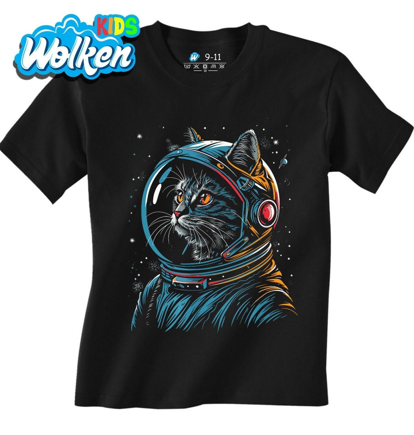 Dětské tričko Astronaut Kočka ve Vesmíru. Tato odvážná kočka ve skafandru zírá do hlubin galaxie jako pravý astronaut na misi. Ilustrace spojuje eleganci kočky s nekonečností vesmíru, kde se mňoukání rozléhá mezi hvězdami. Motiv je ideální pro milovníky zvířat, sci-fi a originálního stylu.