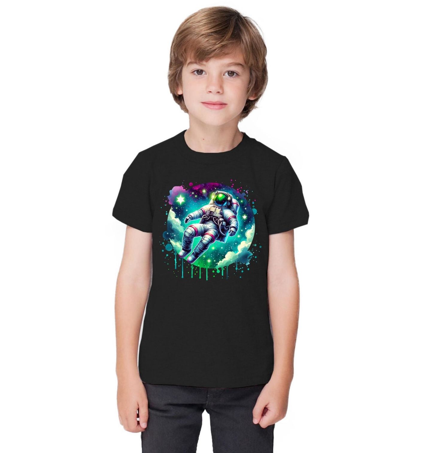 Dětské tričko Astronaut ve Vesmíru. Originální motiv, na kterém se vznáší astronaut volně uprostřed nekonečna, kde vládne jen ticho a vesmír plný hvězd. Barevný, snový design působí klidně a zároveň dobrodružně - jako pozvánka k objevování nových světů. Skvělá volba pro milovníky kosmu, sci-fi, astronomie nebo každého, kdo si občas rád odpočine od reality a nechá myšlenky volně plout mezi galaxiemi.