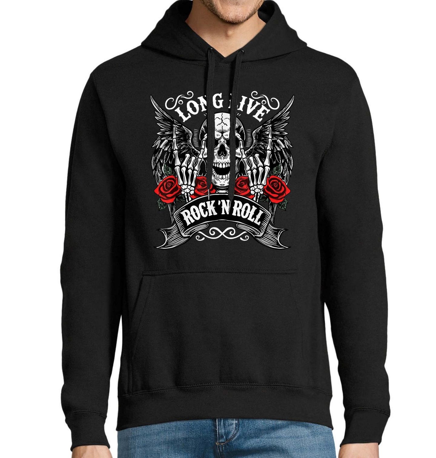 Pánská mikina Ať žije Rock and Roll Long Live Rock ’n’ Roll. Lebka s růžemi vyjadřuje nespoutanost a sílu, růže dodávají motivu vášeň a emoce, které rock and roll přináší. Tento design je ideální pro fanoušky hudby, kteří milují koncert, festival i každá pořádná párty, kde zní hlasitá kytara a energie proudí davem. Pokud je pro tebe kytara symbolem svobody a hudba způsobem života, tento design jasně ukáže tvůj styl.