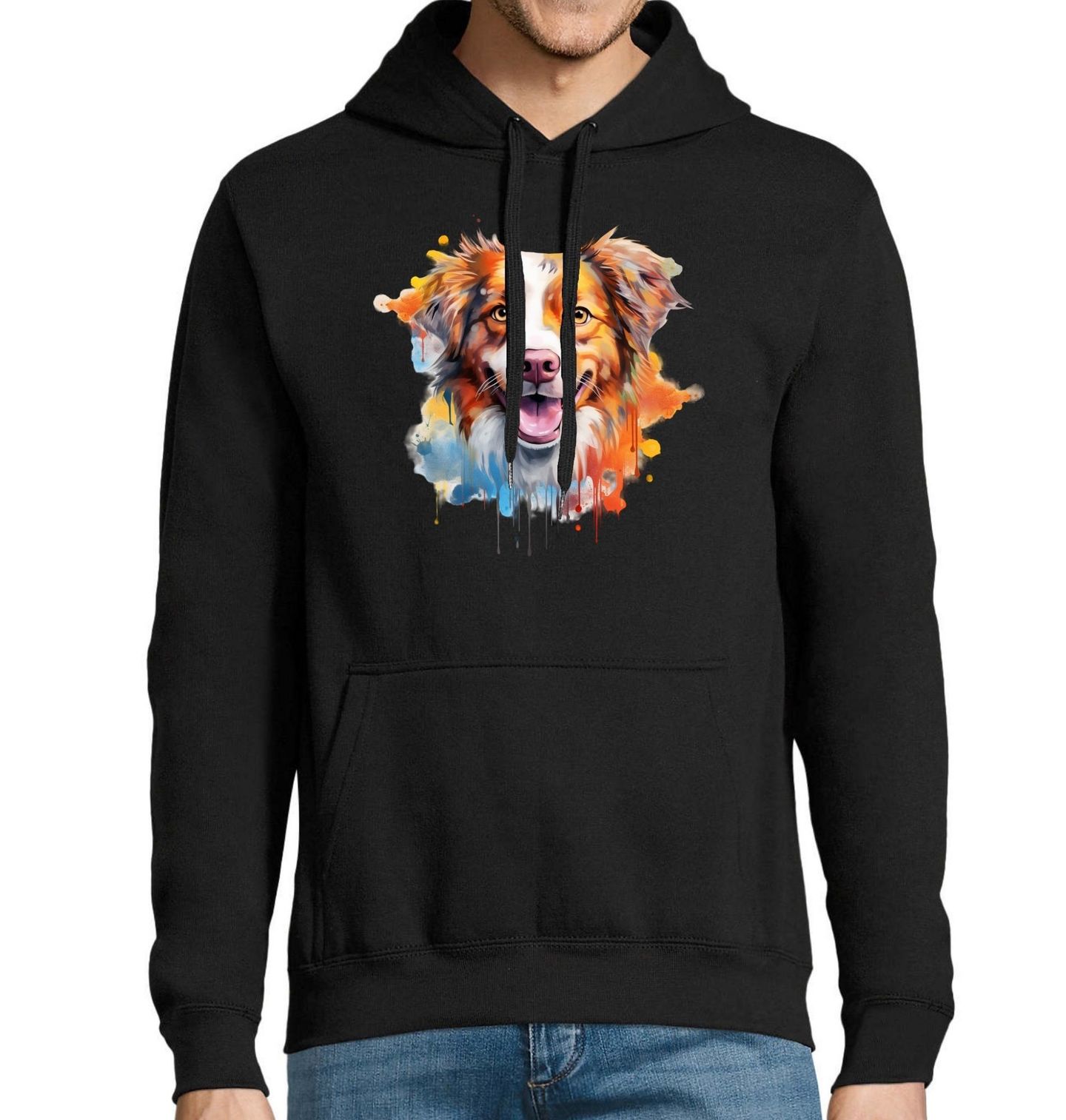 Pánská mikina Australský ovčák Red merle. Australský ovčák je červeno-hnědý mramorovaný pes plný života, věrnosti a inteligence – a přesně to vystihuje i tento originální potisk. Triko je ideální dárek pro každého milovníka plemene Australský ovčák i pro každého pejskaře, který ví, že pes je víc než jen zvíře – je to člen rodiny.
