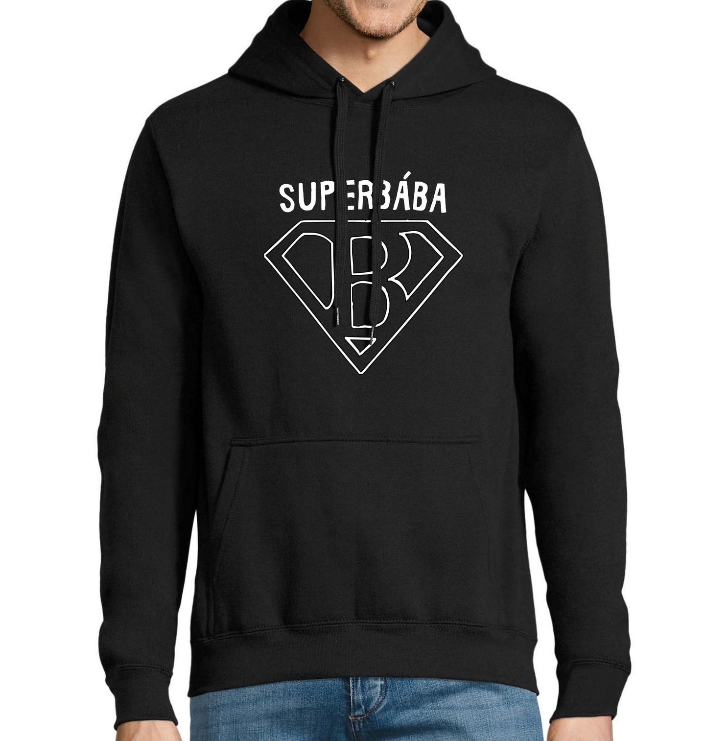 Pánská mikina B jako SuperBába. Každá babička si zaslouží svůj znak superhrdiny! Tento motiv inspirovaný legendárním logem Supermana vzdává poctu všem babičkám, které zachraňují svět svými koláči, objetím a nadhledem. Protože babička není jen roztomilá dáma – je to superhrdina v zástěře!