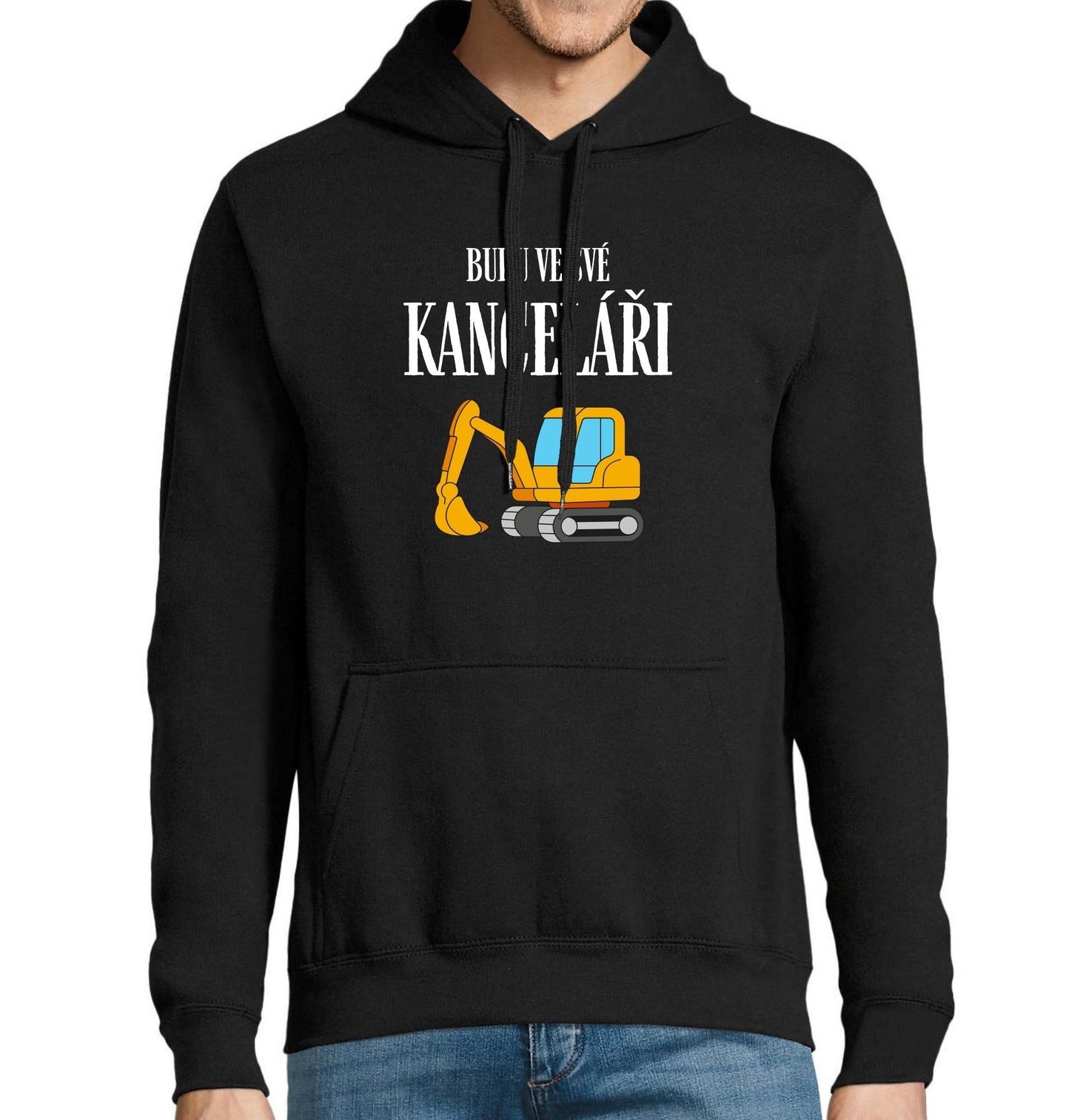 Pánská mikina Bagr Budu ve své kanceláři. Originální a vtipný motiv s nápisem „Budu ve své kanceláři“ a obrázkem stavebního stroje potěší každého, komu se skutečnou kancelář stává kabina stroje. Jestli je tvým druhým domovem bagr a miluješ práci na stavbě víc než klimatizovanou kancelářskou židli, tenhle motiv je přesně pro tebe.