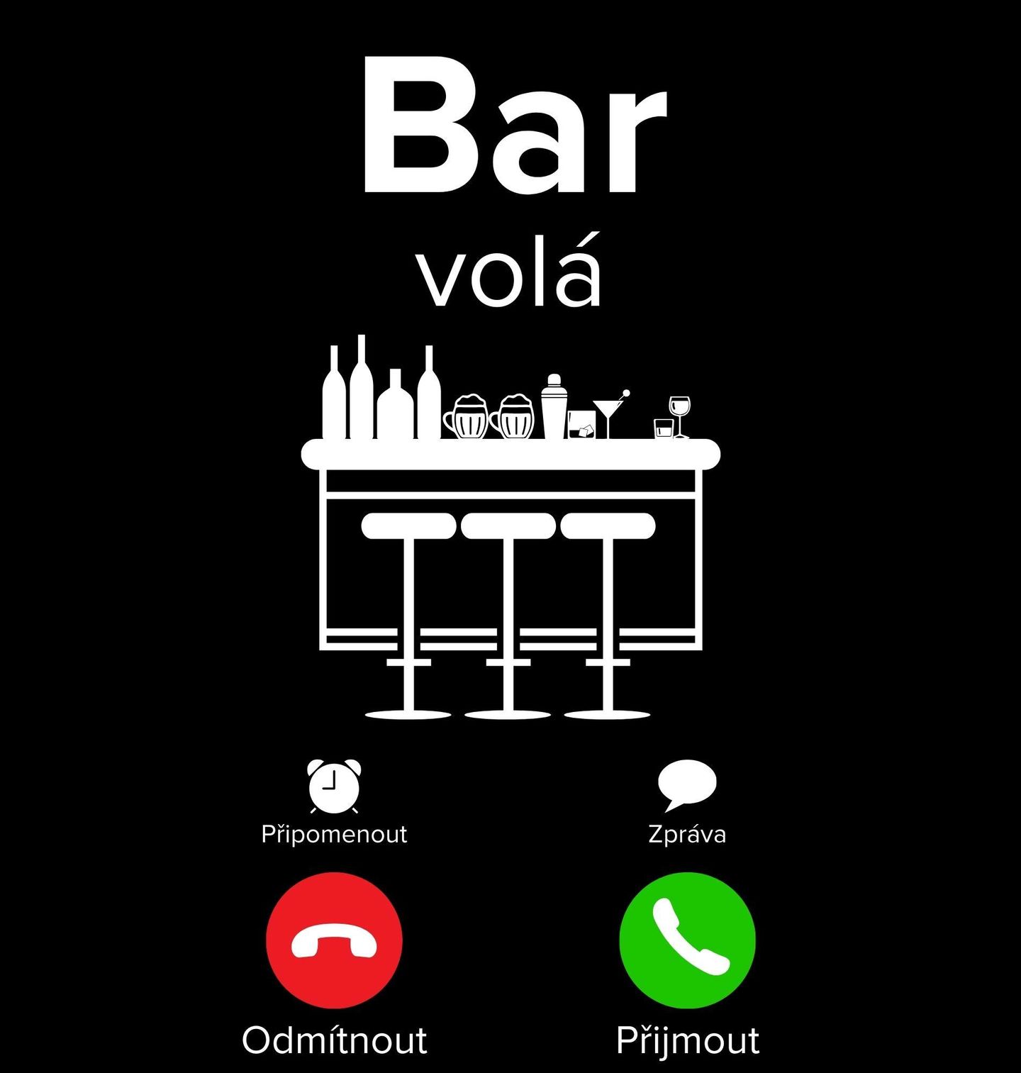 Pánské tričko Bar volá Phone Call. Stylový minimalistický motiv s ikonickým barem a příchozím hovorem je jasným signálem, že začíná párty. Čisté linie a kontrastní provedení dávají vyniknout atmosféře noční zábavy, kde hlavní roli hraje alkohol, přátelé a dobrá nálada. Design pobaví každého milovníka barů, večerního posezení a lehkého humoru.