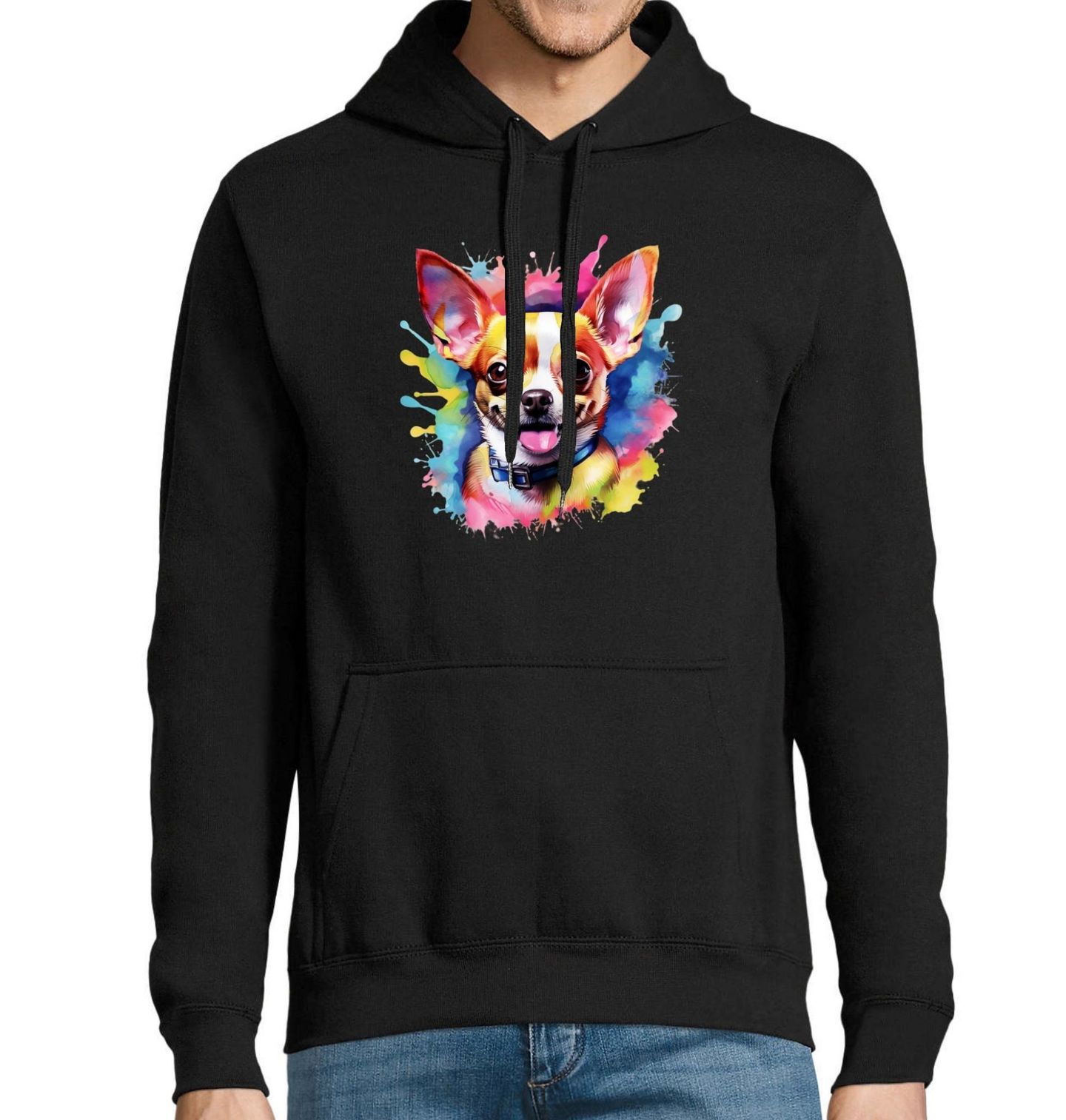Pánská mikina Barevná Čivava. Tento motiv je jako stvořený pro každého, koho baví barvy, život a samozřejmě pes! Usměvavá čivava v pestrém výtvarném stylu zaujme na první pohled a rozzáří každý outfit. Skvělá volba pro každého pejskaře, který miluje originální design a hravost.