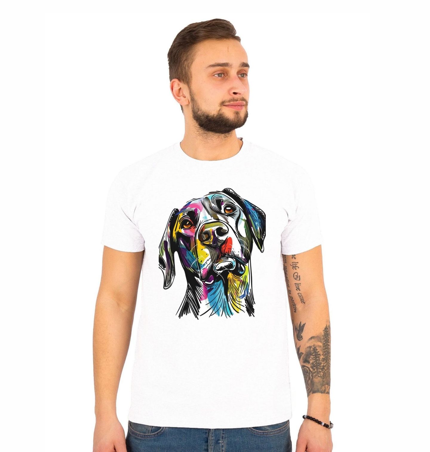 Pánské tričko Barevná skica Labradorský retrívr. Toto originální tričko s motivem v ručně kresleném stylu přináší svěží a hravý pohled na věrného parťáka – pes Labradorský retrívr v barevné skice. Každý pejskař, který miluje umění urban art, barvy a kreativní design, si tenhle motiv zamiluje.