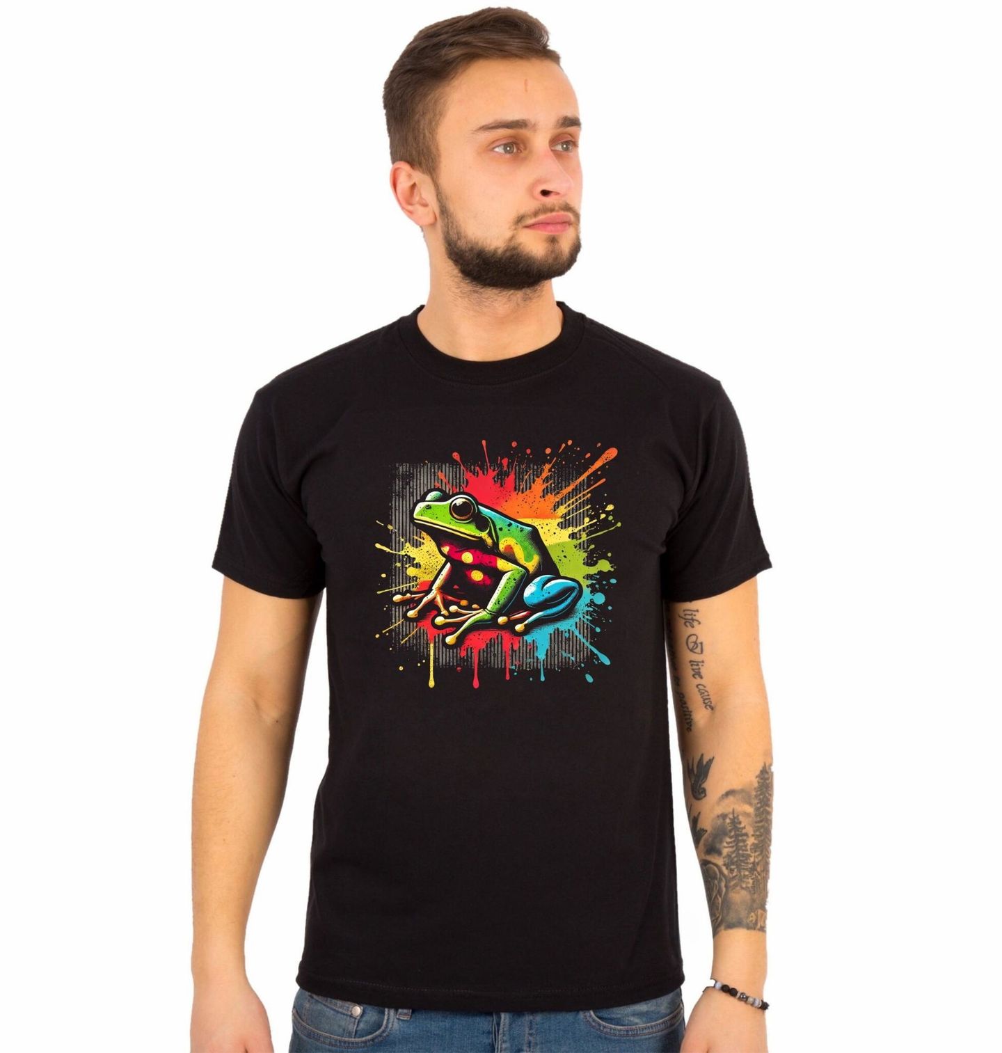 Pánské tričko Barevná Žába Graffiti. Exploze barev a pouličního umění! Tento výrazný motiv s graffiti estetikou zachycuje žábu v pestrobarevném stylu street artu. Skvěle se hodí pro milovníky přírody, umění, žab i výrazného městského designu. Každá žába by záviděla takový styl!