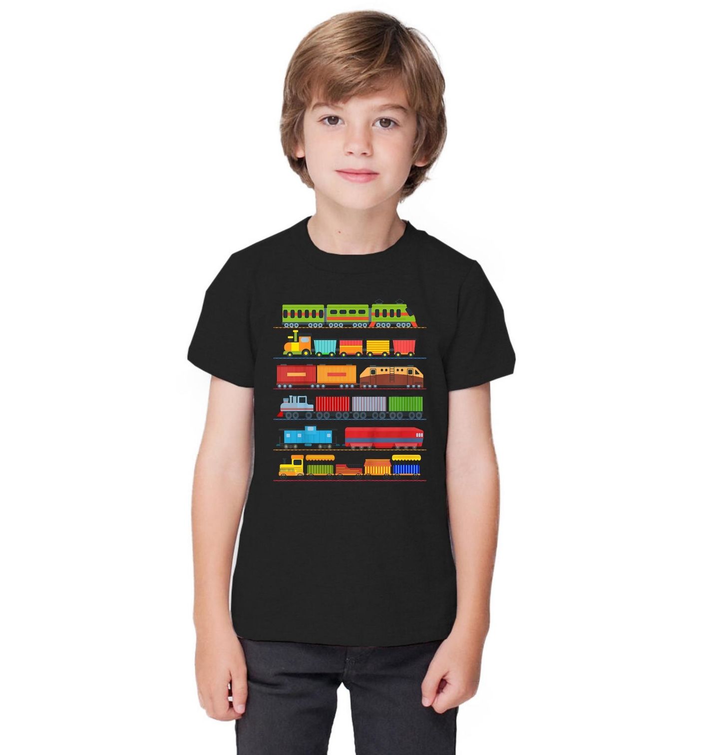 Dětské tričko Barevná Železnice plná Vlaků. Veselý a hravý motiv plný barevných souprav, kde hlavní roli hraje stylová lokomotiva v různých podobách. Ilustrace je laděná do přátelských barev a působí radostně, takže potěší děti, rodiče i všechny fanoušky železnice.