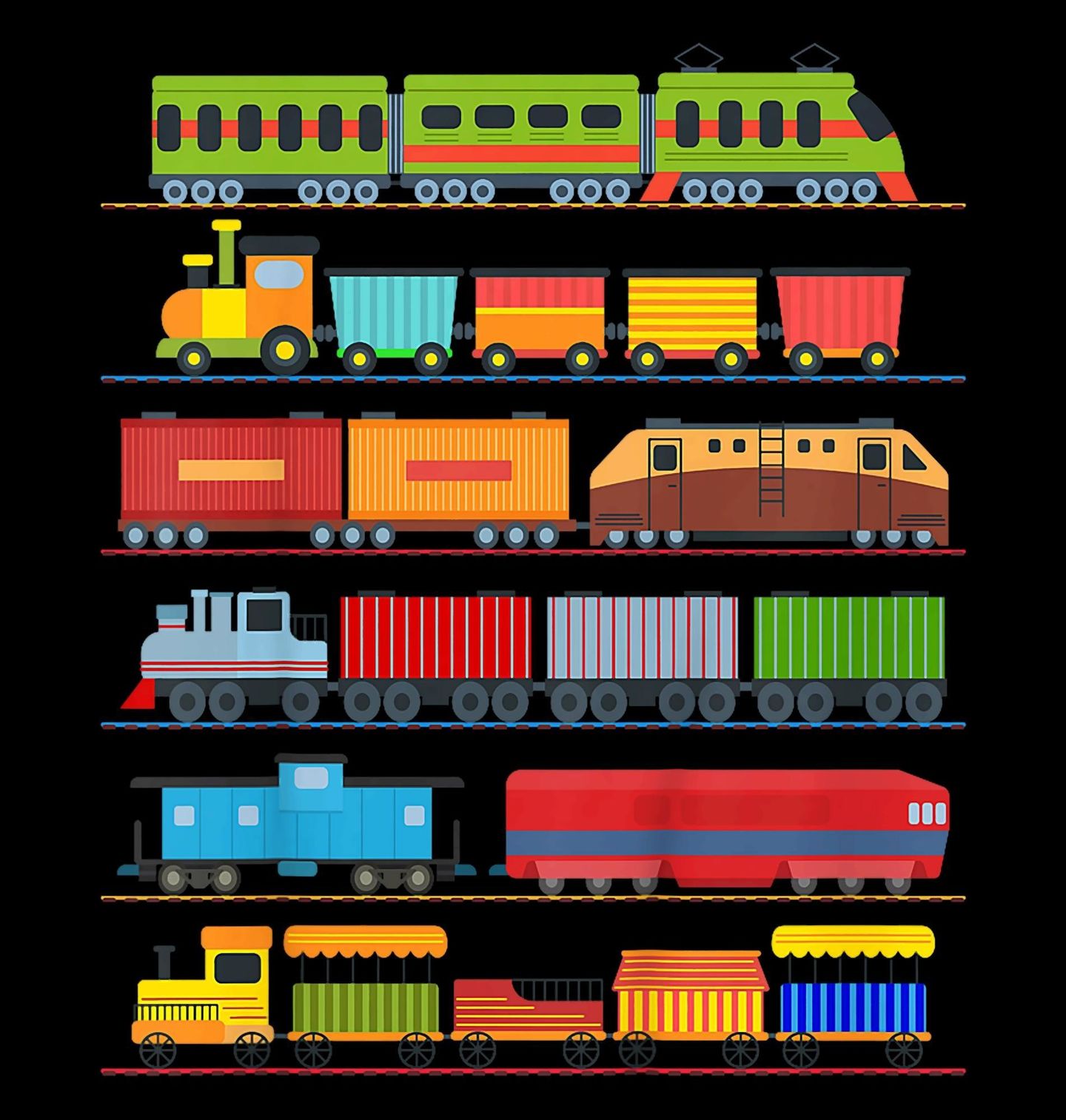 Pánská mikina Barevná Železnice plná Vlaků. Veselý a hravý motiv plný barevných souprav, kde hlavní roli hraje stylová lokomotiva v různých podobách. Ilustrace je laděná do přátelských barev a působí radostně, takže potěší děti, rodiče i všechny fanoušky železnice.