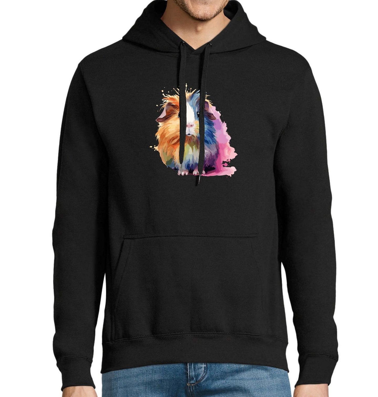 Pánská mikina Barevné Morče. Morče neboli mazlivý hlodavec! Design připomíná akvarelový obraz – syté barvy v duhové kombinaci tvoří unikátní vizuální efekt, který rozzáří každodenní outfit. Detailní kresba morčete s jemným výrazem, chlupatým kožíškem a výraznými barvami je perfektní volbou pro chovatele i milovníky roztomilých zvířátek.