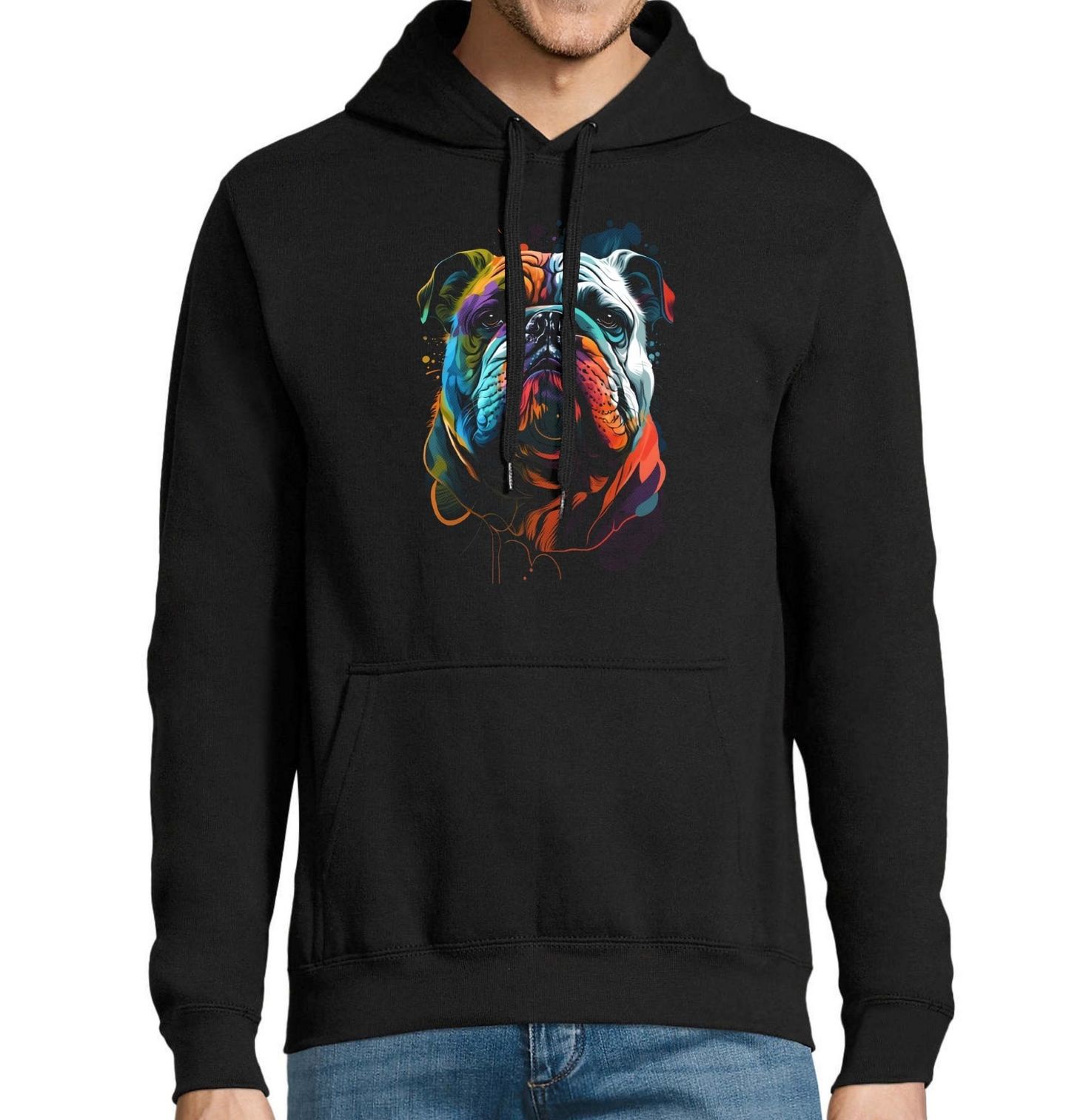 Pánská mikina Barevný Bulldog. Pes Bulldog je ideální volbou pro každého, kdo miluje psy a hledá originální design. Tento motiv zobrazuje majestátní hlavu plemene bulldog, které je známé svou věrností a typickým výrazem. Hodí se jak pro každého pejskaře, tak i pro milovníky streetwear stylu. Ukaž světu, že pes je tvůj nejlepší přítel – ať už doma nebo na tričku!