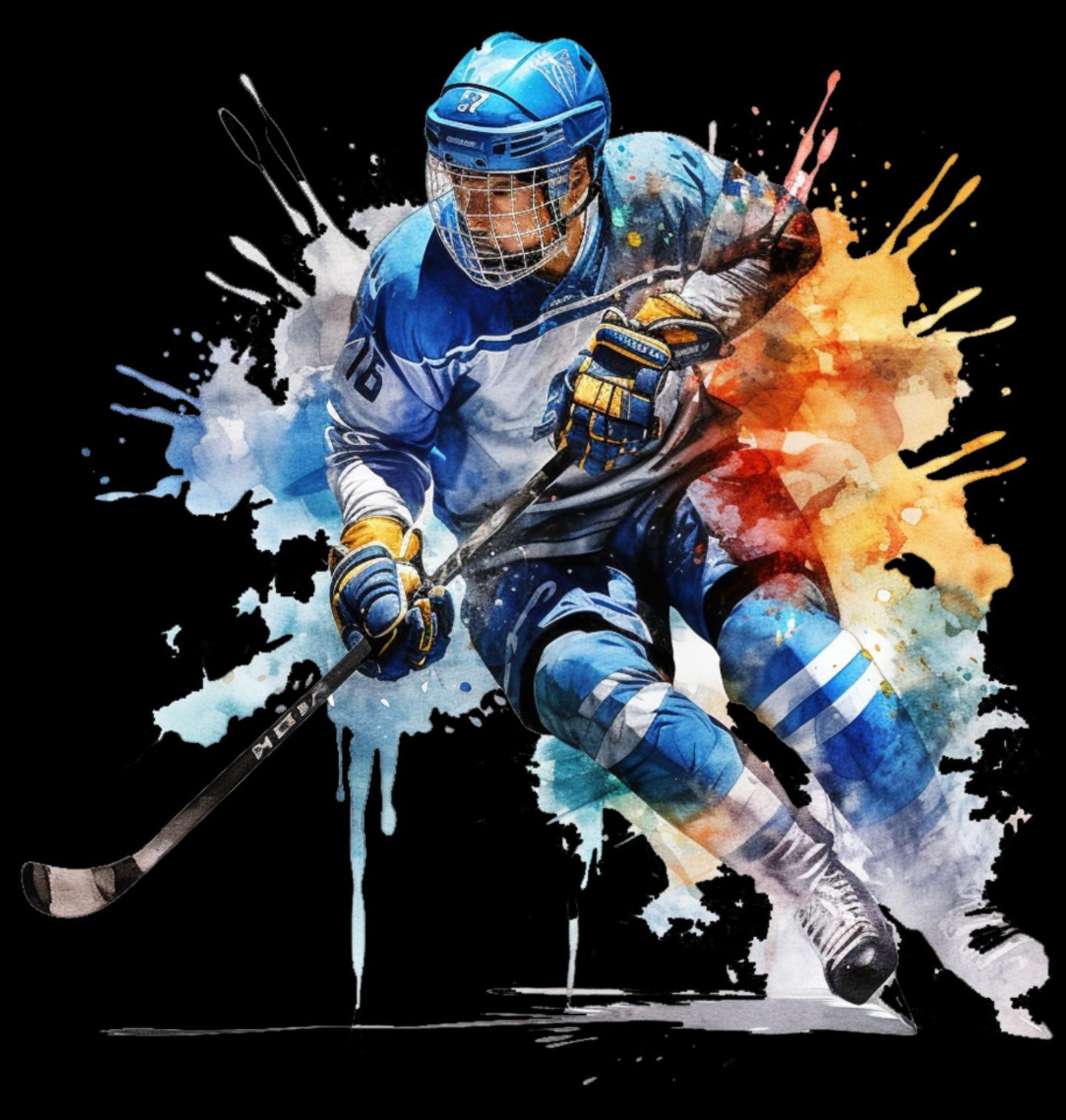 Pánské tričko Barevný Hokejista na Ledu. Tento dynamický motiv zachycuje čistou vášeň a energii, kterou v sobě hokej jako sport nese. Hráč v plné rychlosti proráží barevným akvarelovým pozadím a vytváří tak moderní a výrazný design, který zaujme na první pohled. Ideální pro všechny fanoušky, hráče i trenéry, kteří chtějí ukázat, že hokej je jejich životní styl.
