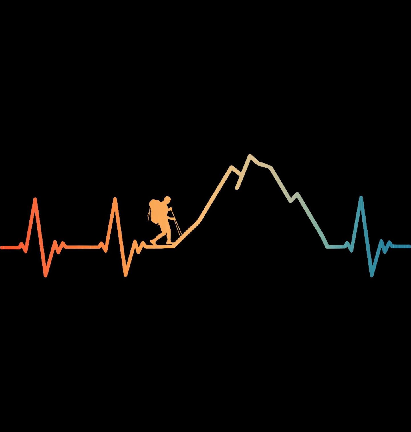 Pánské tričko Barevný Kardiogram a Hiking. Originální motiv kardiogram plynule přecházející do siluety hory a postavy na hiking výšlapu. Ideální pro všechny milovníky přírody, turistiky, dobrodružství a horských treků. Pokud i tvé srdce bije pro hiking a hory, tenhle design tě bude přesně vystihovat.
