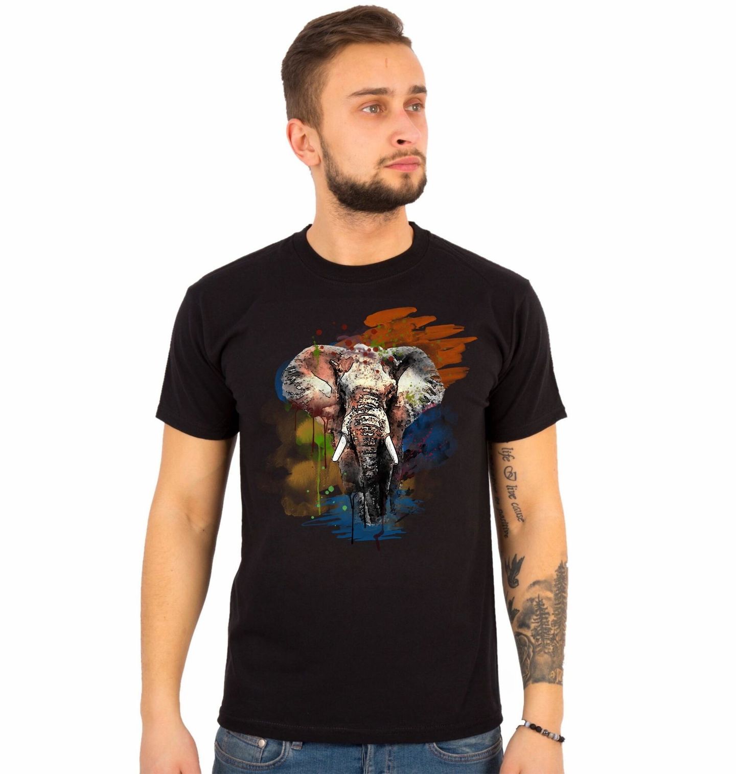 Pánské tričko Barevný Slon africký. Originální umělecký motiv, kde majestátní slon vystupuje z výrazných barevných tahů a akvarelových skvrn. Dynamická ilustrace kombinuje realistickou kresbu se street-art stylem, díky čemuž působí moderně a energicky. Tento slon symbolizuje sílu, svobodu i divokou přírodu a skvěle vynikne jako výrazný design pro každodenní nošení.