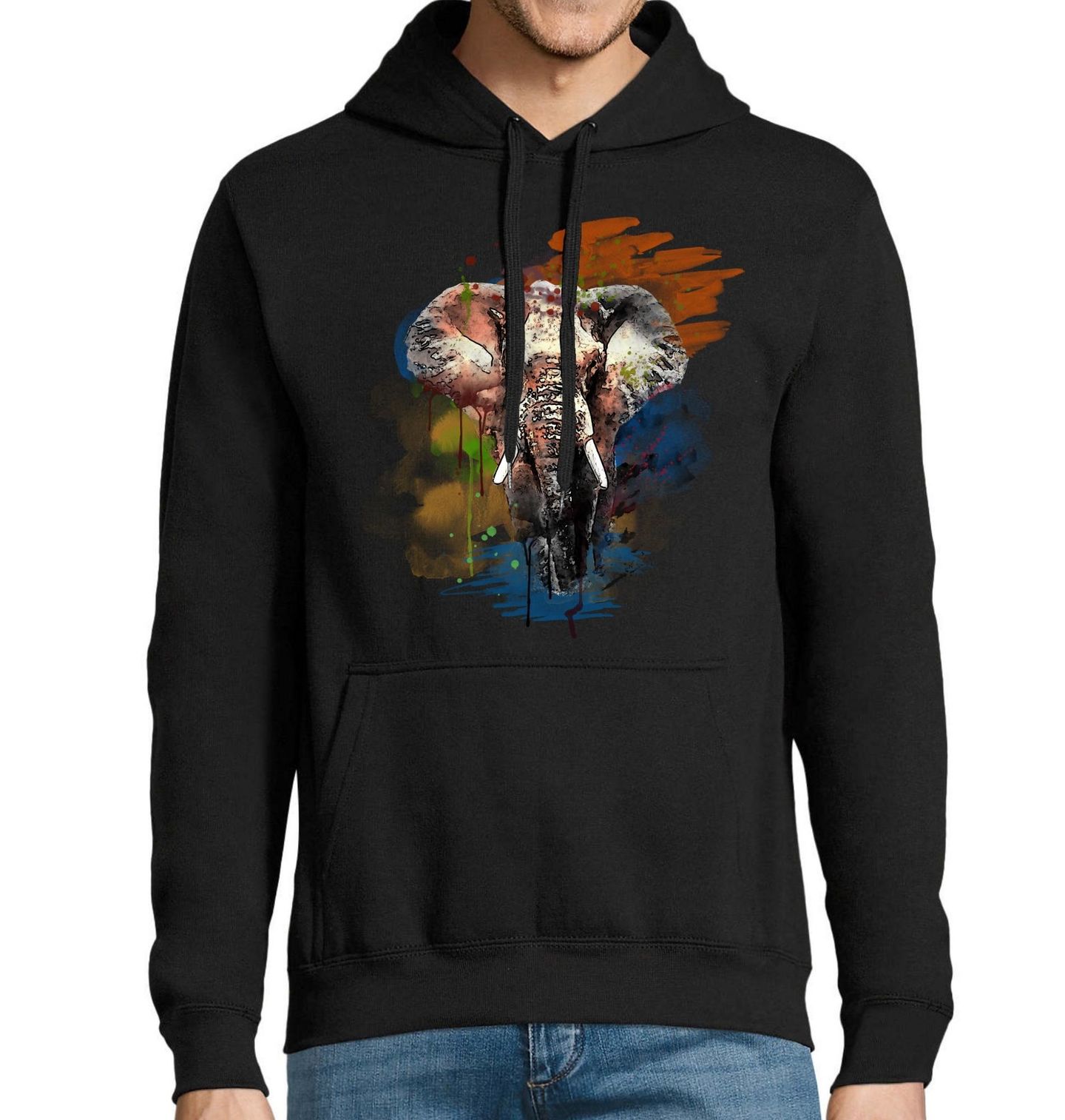 Pánská mikina Barevný Slon africký. Originální umělecký motiv, kde majestátní slon vystupuje z výrazných barevných tahů a akvarelových skvrn. Dynamická ilustrace kombinuje realistickou kresbu se street-art stylem, díky čemuž působí moderně a energicky. Tento slon symbolizuje sílu, svobodu i divokou přírodu a skvěle vynikne jako výrazný design pro každodenní nošení.