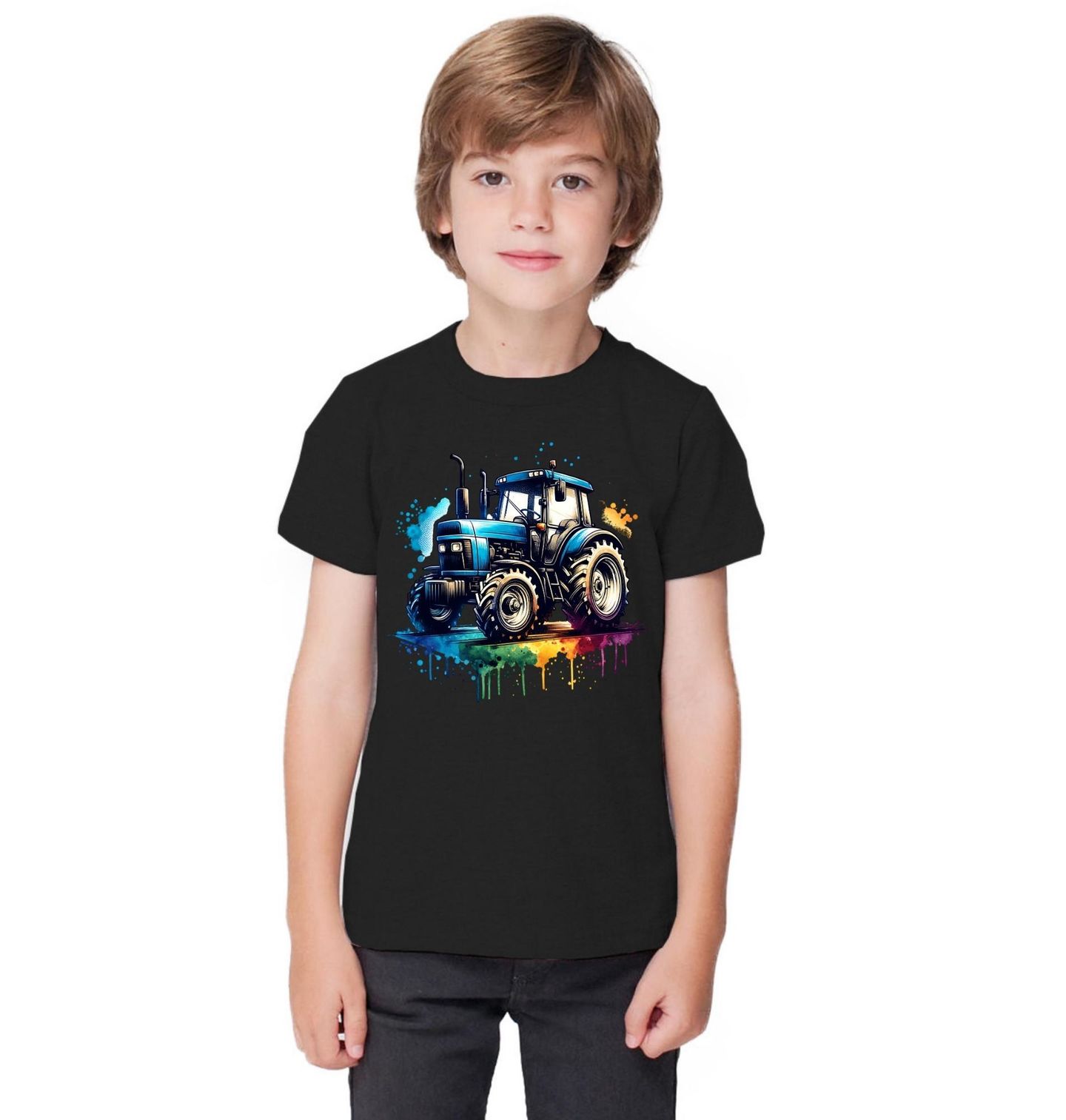 Dětské tričko Barevný Traktor. Když se síla setká se stylem, vznikne barevný traktor, který tě vezme přes pole i přes plátno. Tohle není jen stroj – je to umělecký statement. Moderní design s kapkou venkova, tónovaný do duhového rytmu.