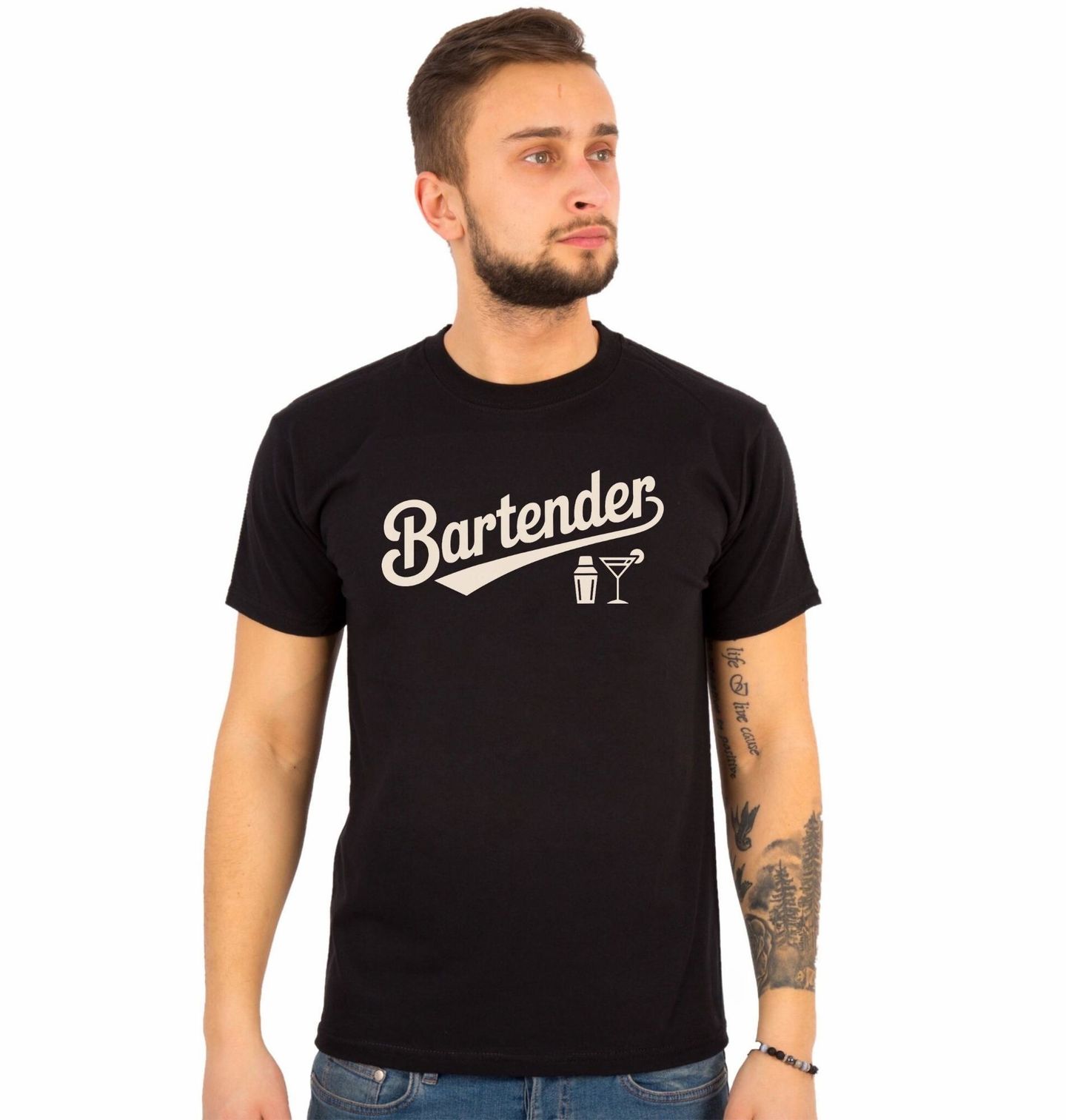 Pánské tričko Barman Bartender. Elegantní motiv v retro stylu doplňuje silueta shakeru a koktejlové sklenice s ozdobou. Grafika působí čistě, moderně a přitom s lehkým vintage nádechem, takže skvěle vystihuje atmosféru barové kultury, koktejlů a světa, kde hraje hlavní roli alkohol.