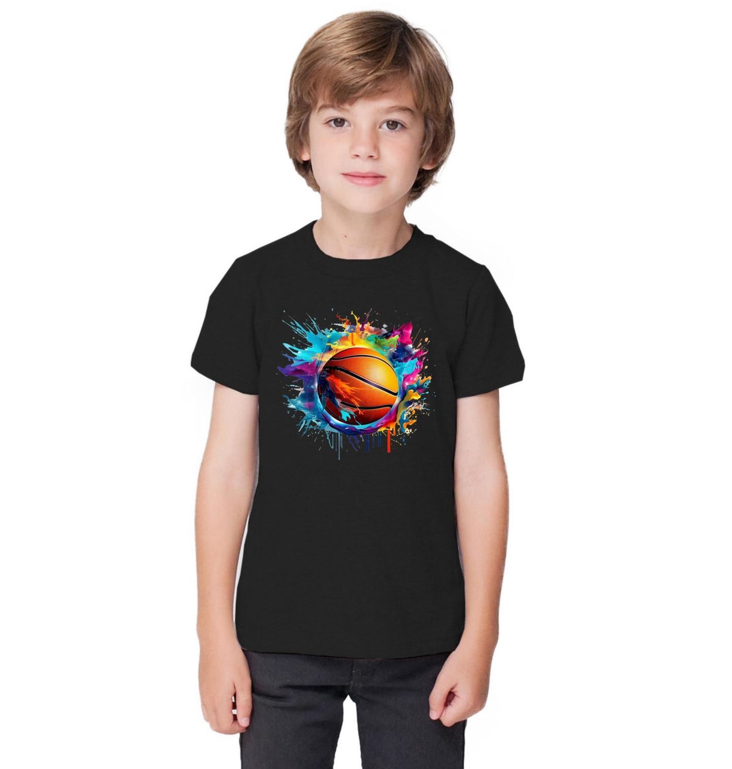 Dětské tričko Basketbalový Míč v Explozi Barev. Energie, styl a vášeň – tento design zachycuje basketbal v jeho nejživější podobě! Exploze barev kolem realistického míče vytváří dojem pohybu a síly, který ocení každý milovník street stylu i sportu.