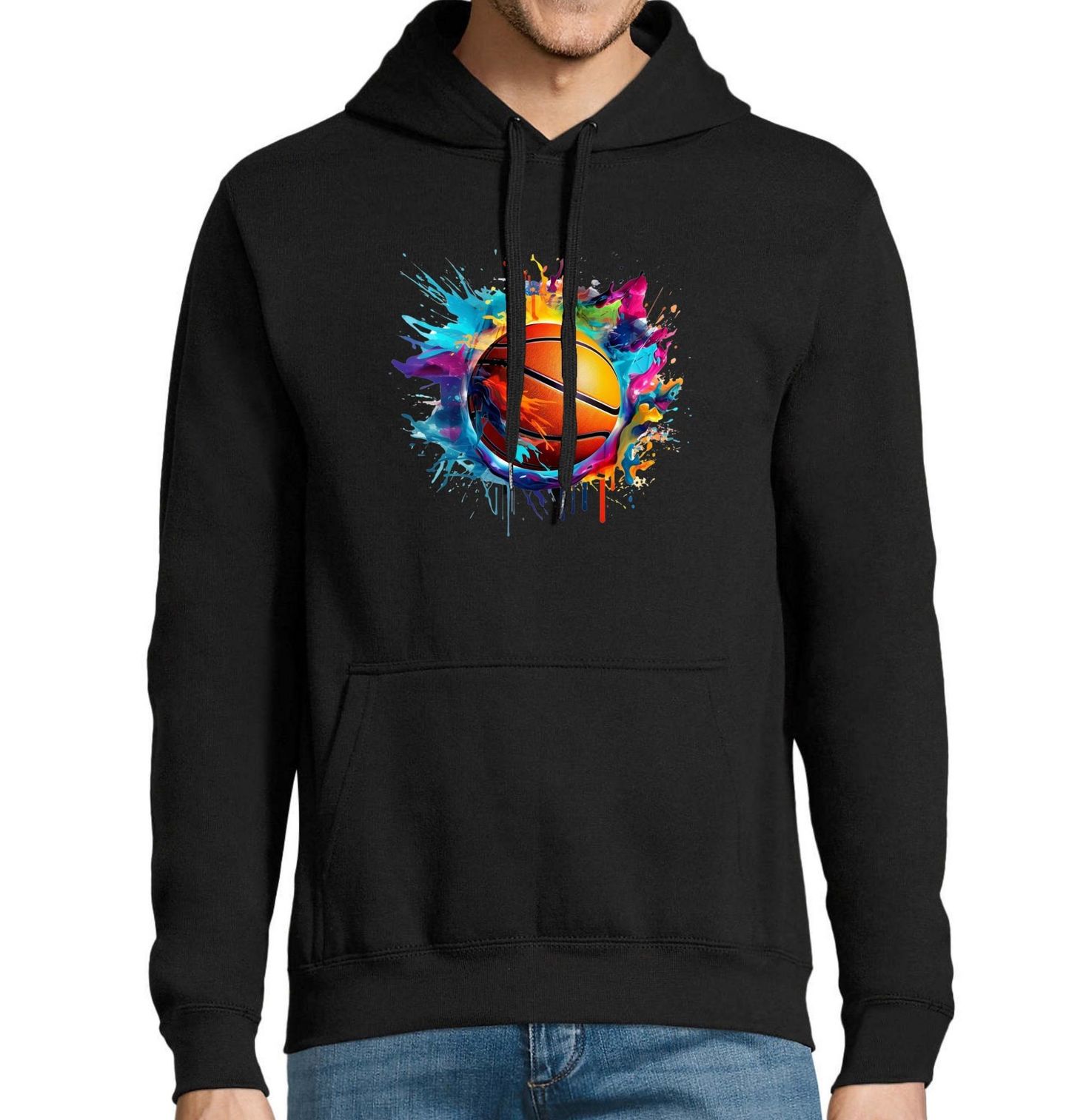 Pánská mikina Basketbalový Míč v Explozi Barev. Energie, styl a vášeň – tento design zachycuje basketbal v jeho nejživější podobě! Exploze barev kolem realistického míče vytváří dojem pohybu a síly, který ocení každý milovník street stylu i sportu.