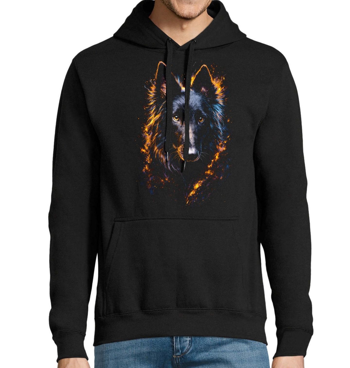 Pánská mikina Belgický ovčák Groenendael. Každý pejskař, který miluje aktivní a oddané psy, ocení detailní zpracování srsti i pronikavý výraz, který dodává motivu jedinečný charakter. Belgický ovčák Groenendael je známý svou inteligencí, ochranitelskou povahou a silným poutem ke svému majiteli. Tento elegantní pes s hlubokým pohledem symbolizuje věrnost, odvahu a přirozený instinkt.