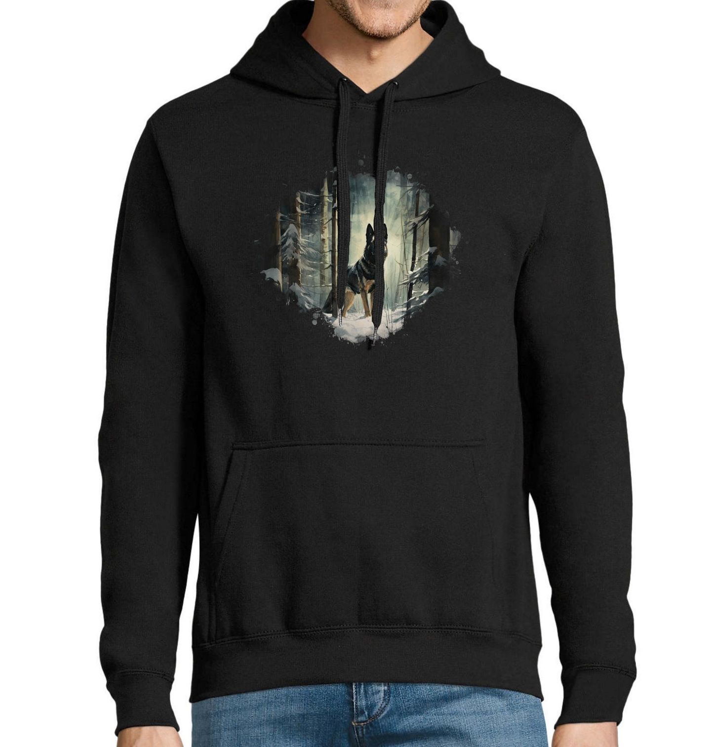 Pánská mikina Belgický ovčák Malinois ve Sněhu. Malinois ve sněhovém lese vystihuje klidnou sílu, odvahu a přirozenou autoritu tohoto úžasného plemene. Tento pes je nejen dokonalým ochráncem, ale i věrným přítelem každého pejskaře, který miluje dobrodružství a přírodu. Stylový design potěší každého milovníka psů, který hledá spojení krásy, síly a elegance.