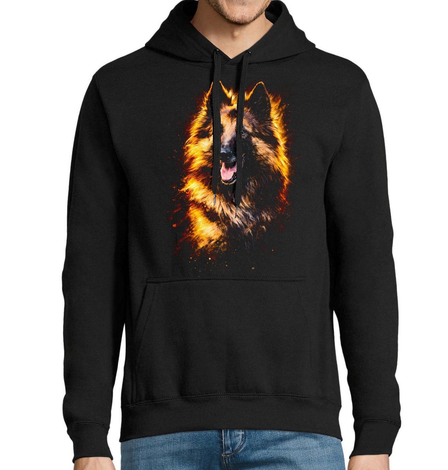 Pánská mikina Belgický ovčák Tervueren. Tervueren je dlouhosrstá varieta belgického ovčáka. Tento nádherný pes vyniká dlouhou hustou srstí v teplých odstínech a typickým výrazem plným pozornosti a oddanosti. Každý pejskař ocení detailní zpracování, které zdůrazňuje inteligentní pohled i charakteristickou siluetu tohoto plemene.
