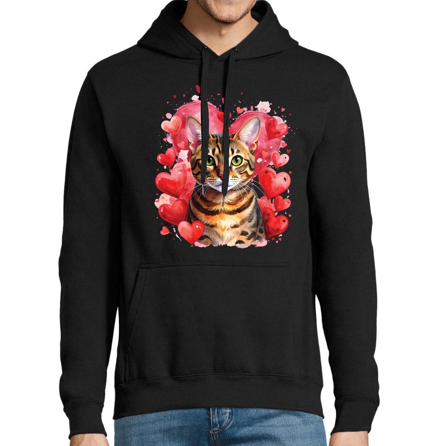 Pánská mikina Bengálská Kočka mezi Srdci. Ilustrace připomíná bengálskou kočku, známou svou elegantní postavou, výraznýma očima a exotickou kresbou srsti.Design je ideální pro všechny, kteří vnímají kočka jako člena rodiny a chtějí dát světu najevo svou náklonnost ke kočkám. Motiv působí jemně, romanticky a zároveň stylově – skvěle se hodí jako dárek z lásky nebo osobní vyjádření vztahu ke zvířatům.