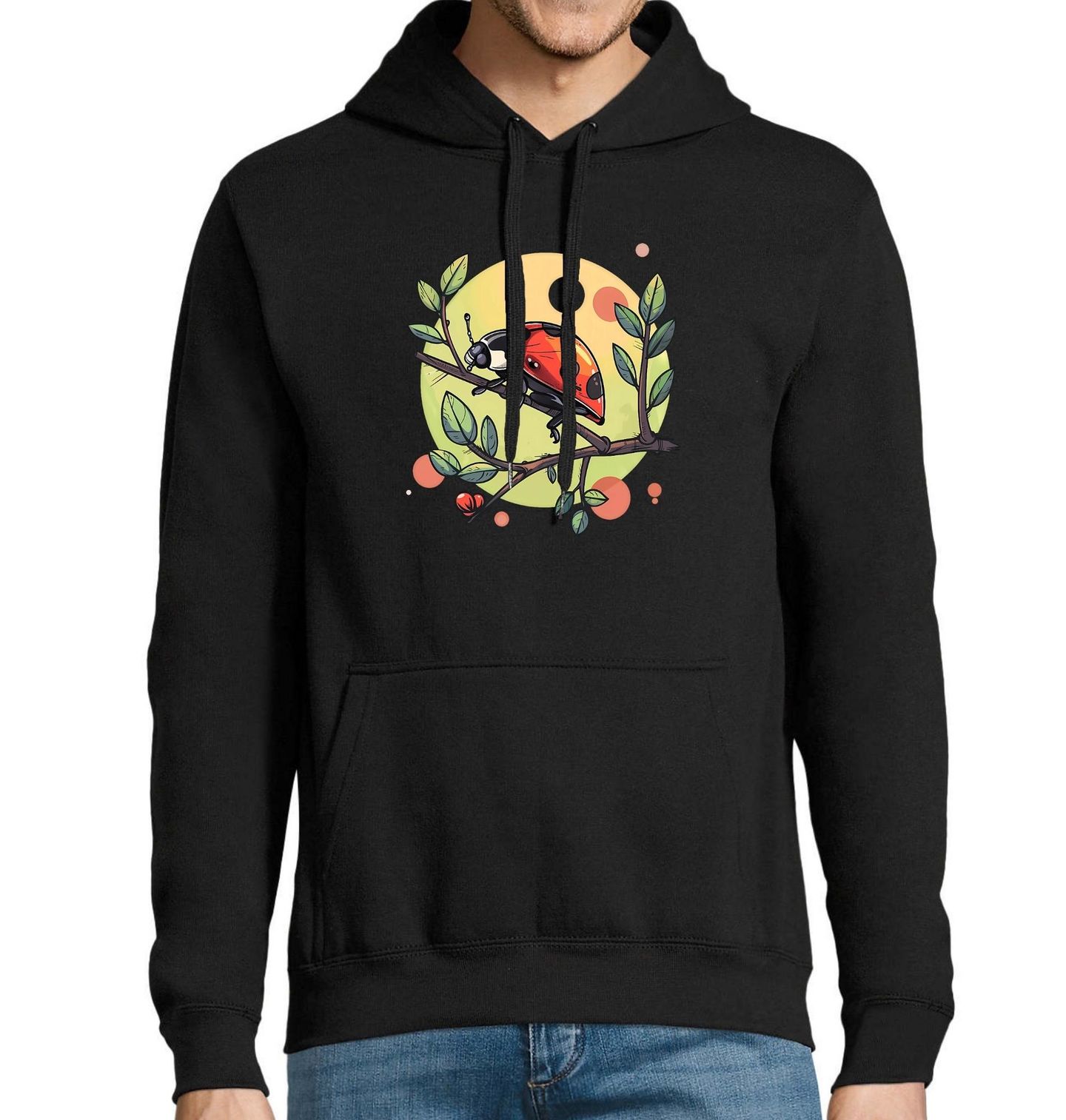 Pánská mikina Beruška při Měsíčním Svitu. Stylové tričko s originálním motivem berušky odpočívající na větvi pod zářícím měsícem. Tento detailní a barevný design zachycuje krásu přírody a jemnost berušky, symbolu štěstí a harmonie. Tričko je ideální pro milovníky zvířat, hmyzu a přírodních motivů.