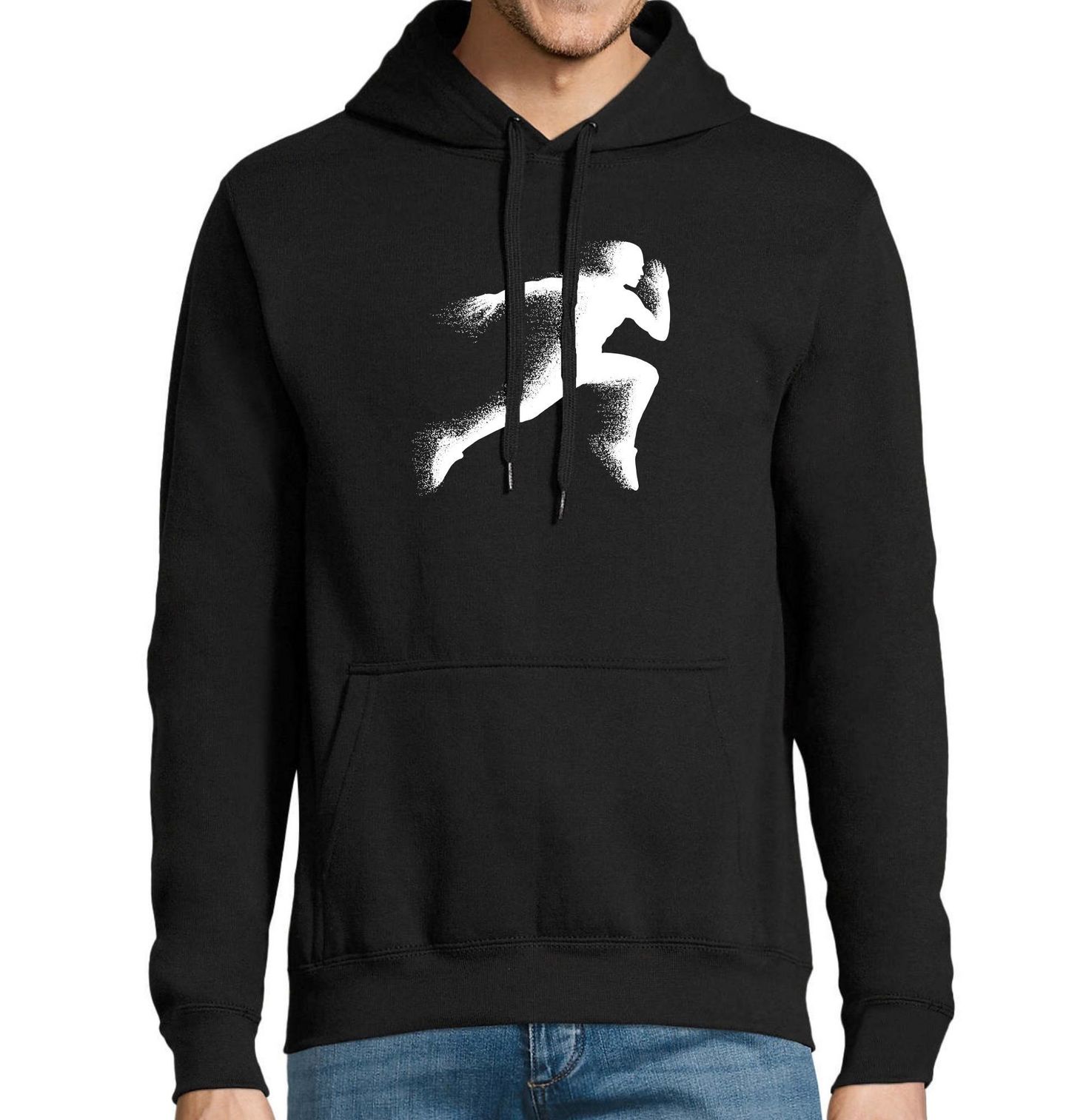 Pánská mikina Běžec Energie Pohybu. Tento moderní grafický motiv zobrazuje dynamickou siluetu běžce, který se rozpadá do drobných bodů a vytváří tak dojem rychlosti, energie a svobody pohybu. Minimalistické černobílé provedení působí stylově a nadčasově. Motiv symbolizuje běh jako životní styl, vášeň i vnitřní sílu posouvat své limity. Skvělá volba pro sportovce, milovníky pohybu i fanoušky originální grafiky.
