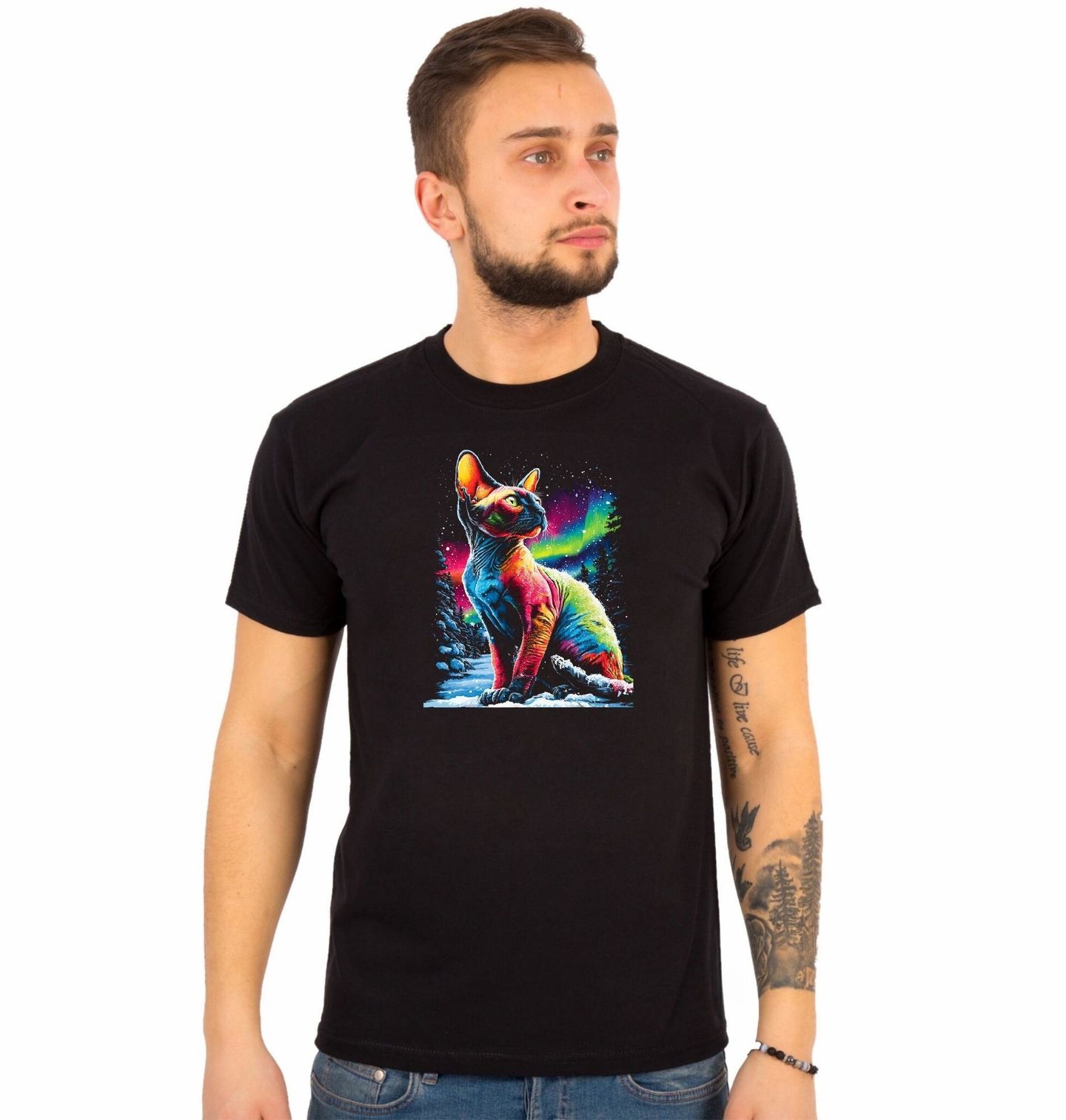 Pánské tričko Bezsrstá Kočka Sphynx pod Polární Září