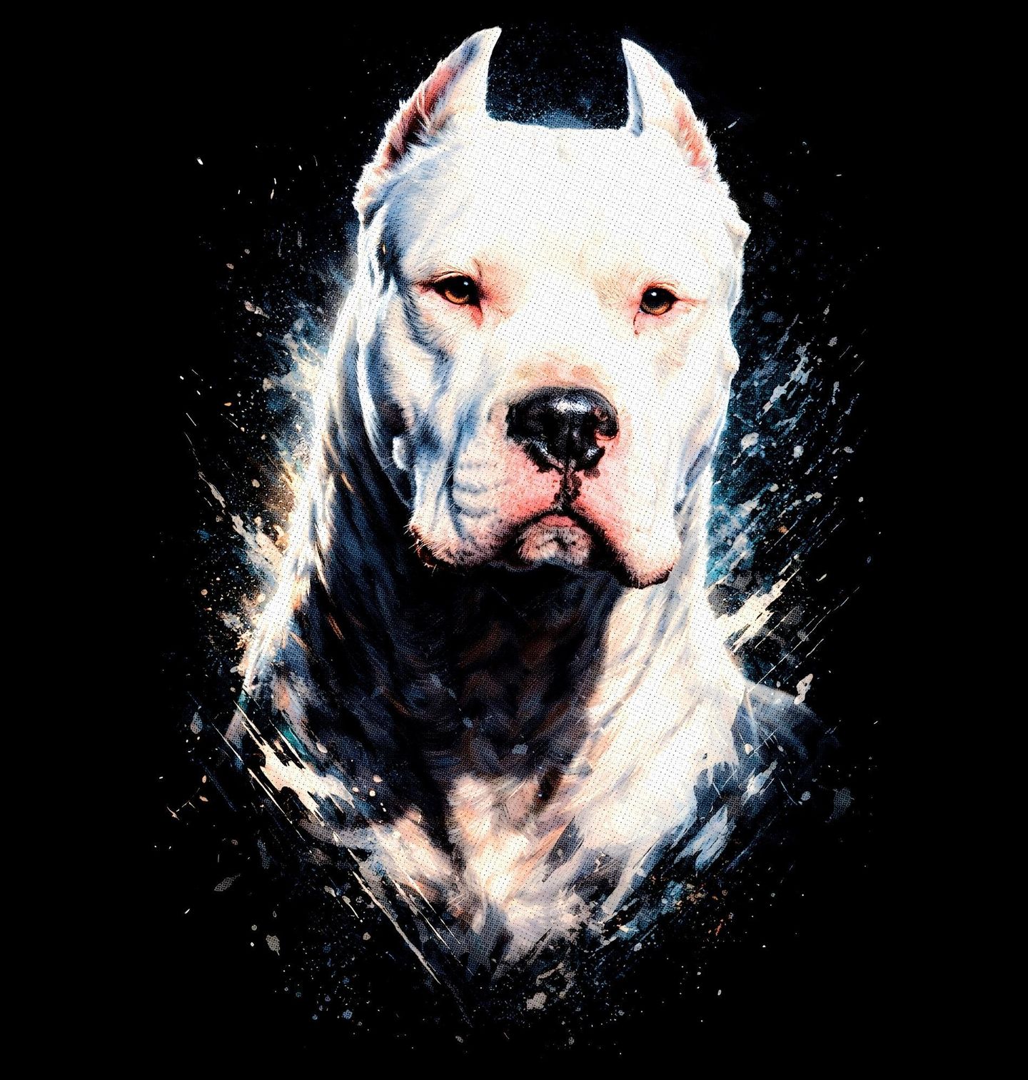 Pánské tričko Bílá Argentinská doga. Tento výrazný motiv zachycuje majestátního psa plemene Dogo Argentino v moderním, kontrastním stylu, kde se snoubí síla a elegance. Detailní ilustrace zvýrazňuje svalnatou postavu, typickou krátkou bílou srst a pevný, soustředěný pohled, díky kterému je tento pes symbolem odvahy, vytrvalosti a oddanosti. Perfektní volba pro každého pejskař, který obdivuje silná a sebevědomá plemena.
