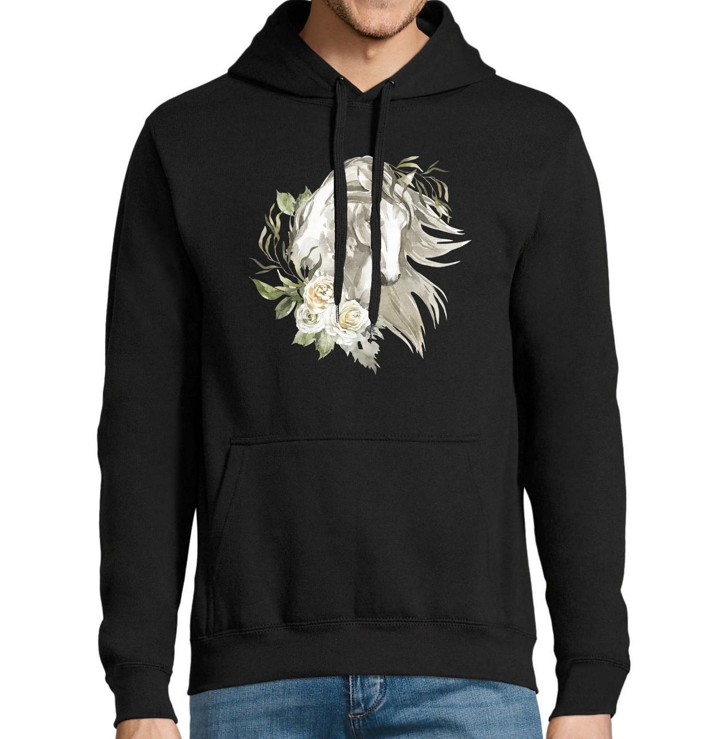 Pánská mikina Bílý kůň a Růže. Motiv bílého koně, jemných růží a květinových detailů vytváří design plný elegance a volnosti. Ideální pro milovníky koní, přírody a romantických motivů. Jemné akvarelové provedení dodává tričku lehkost a sofistikovanost, která se hodí ke každému stylu.