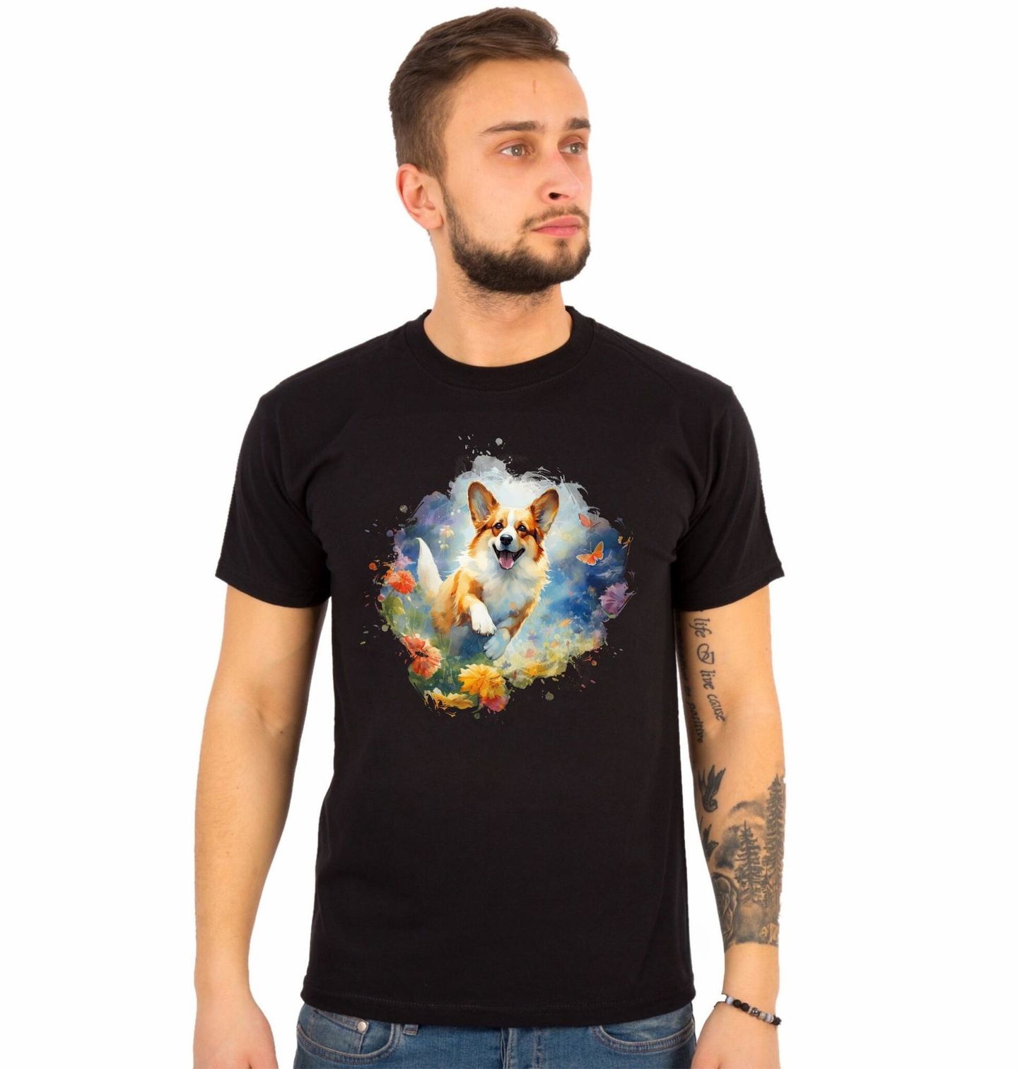 Pánské tričko Bláznivý Corgi v Běhu. Tenhle pes má jediný plán: běžet, smát se a užívat si každý krok. Corgi letí mezi květinami, uši ve větru a úsměv od ucha k uchu. Přesně ten typ energie, kterou každý pejskař zná – a tajně by si ji občas přál mít taky. Motiv je plný radosti, barev a dobré nálady.